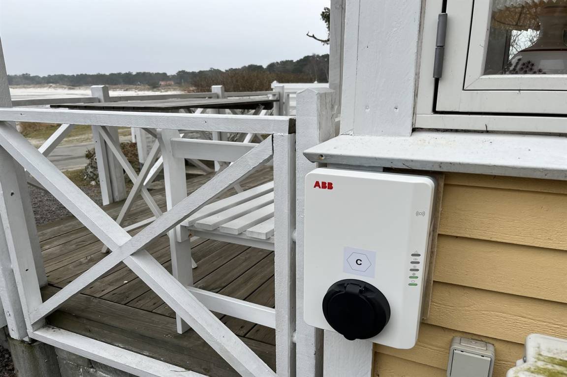 DraußenDie Ferienunterkunft liegt auf einem 280 m² großen Naturgrundstück. Das Grundstück ist eingezäunt. Die Entfernung zum Meer beträgt 20 m. Die nächste Einkaufsmöglichkeit liegt 2000 m entfernt. Außerdem gibt es 10 m² überdachte Terrasse. Geräteraum. Es ist ein Ladestecker für Elektroautos installiert. Ladestecker Typ 2. Parkplatz auf dem Grundstück.