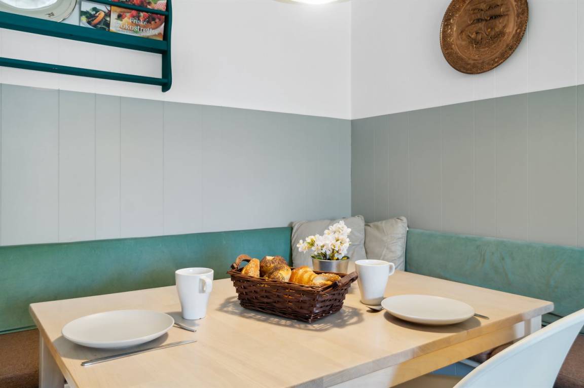 KücheDie Küche ist mit Kühlschrank ausgestattet. Außerdem gibt es 4 Keramik-Kochfelder, Umluftofen, Mikrowelle sowie Geschirrspüler.
