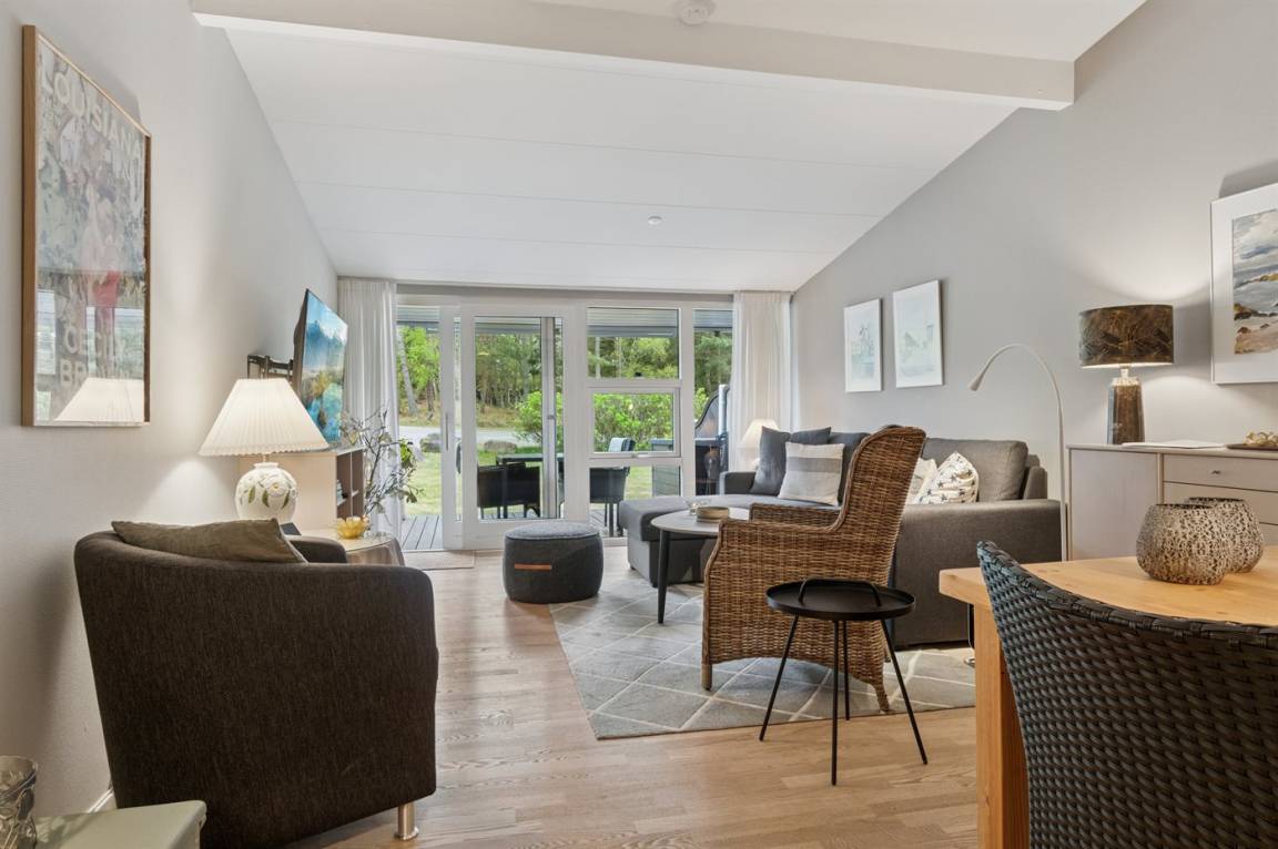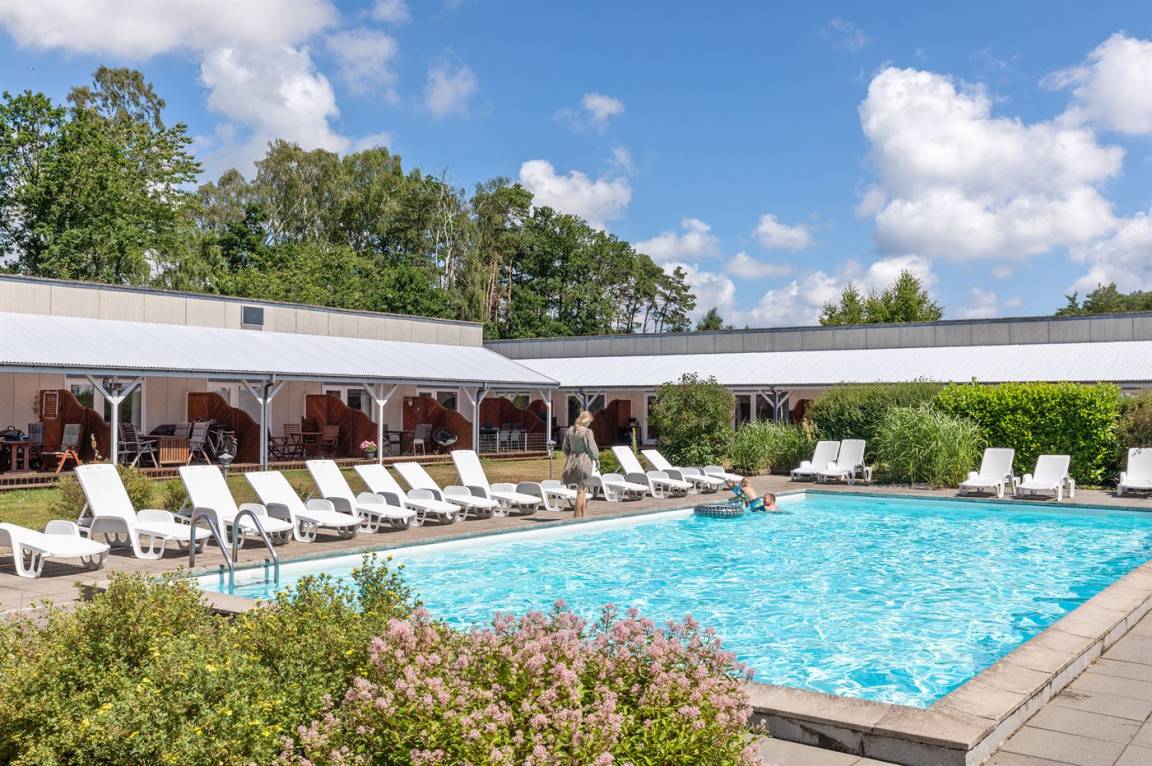 Diese besonders gepflegte und einladende Ferienwohnung – liegt in der Ferienanlage im Dueodde Feriepark, wo es sowohl einen Innen- als auch einen Außenswimmingpool gibt (von ca. 15.6. bis ca. 15.9. beheizt). In der kinderfreundlichen Anlage findest du außerdem einen Tennisplatz, eine Boulebahn, Tischtennis und einen kleinen Fitnessraum. Als besonderes Extra gibt es eine gemeinsame Sauna. Es stehen ebenfalls gemeinschaftlich nutzbare Waschmaschine und Wäschetrockner zur Verfügung.