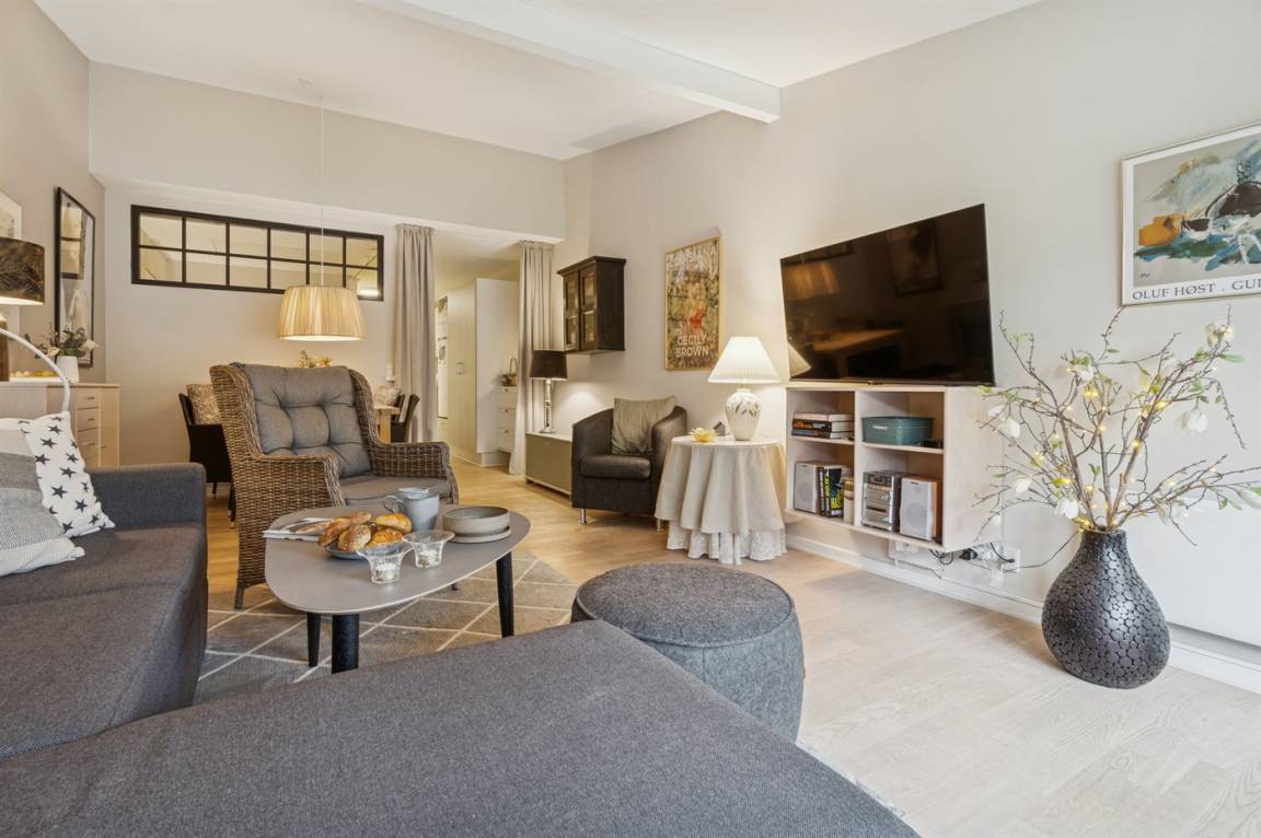 Mit ihren 44 m² gehört die Wohnung zu einer der größeren Wohnungen in der Ferienanlage. Es gibt eine nette Küche mit guter Arbeitsfläche, ein schön renoviertes Badezimmer sowie eine Doppelschlafcouch und ein Alkoven mit guten Matratzen im Wohnzimmer. Du kannst deutsche und dänische Fernsehsender Empfangen.