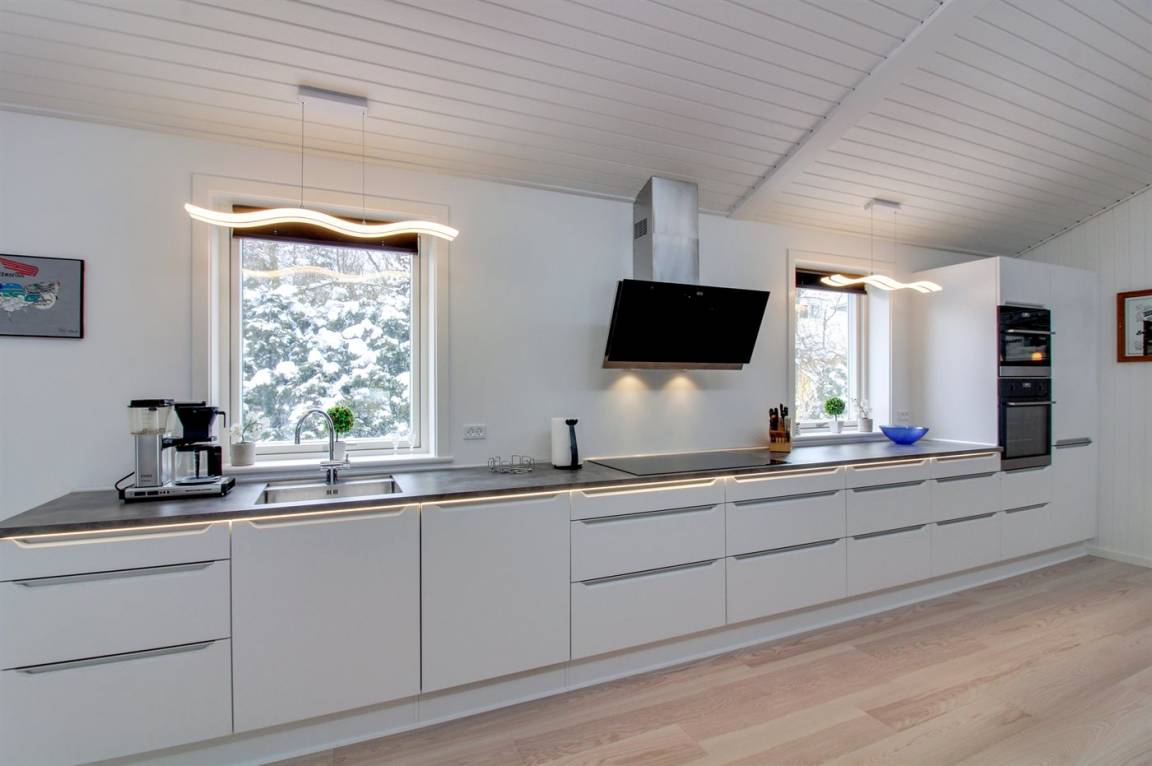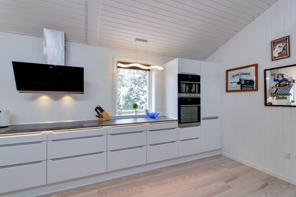 KücheDie Küche ist mit Kühlschrank ausgestattet. Außerdem gibt es 5 Induktions-Kochzonen, Umluftofen, Mikrowelle sowie Geschirrspüler. Fußbodenheizung in der Küche.