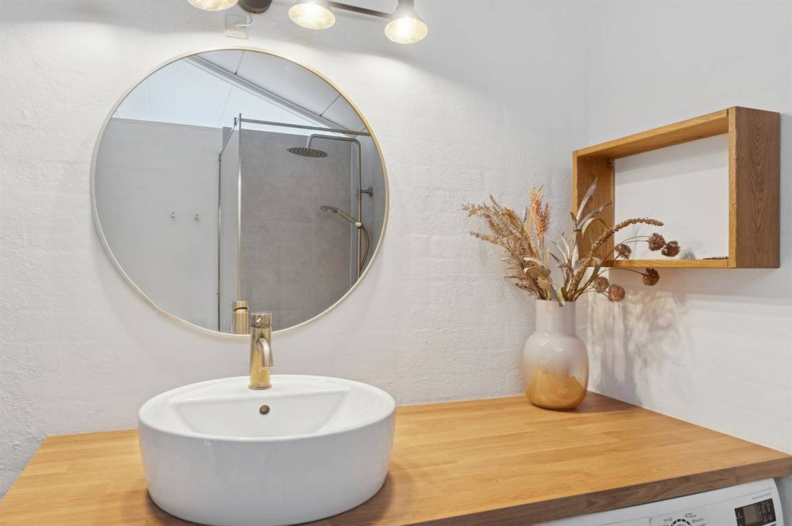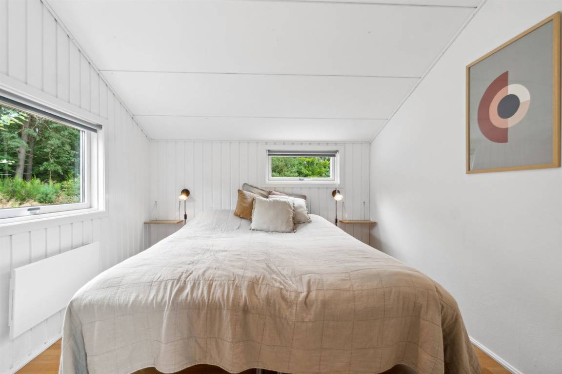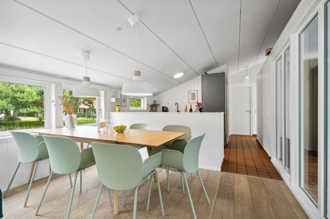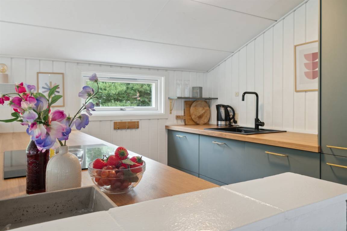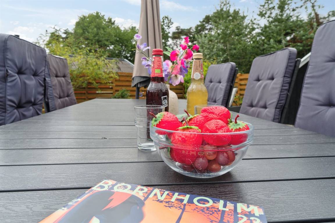 Neben dem Pool gibt es auch Zugang zur Sauna des Hauses, sodass du dich in der kalten Jahreszeit, in der das Haus ebenfalls vermietet wird, nach einem Ausflug auf die Klippen bei Nexø oder einfach entlang des Strandes bis nach Snogebæk aufwärmen kannst. Snogebæk ist in der Saison ein kleines Touristenparadies mit vielen interessanten Angeboten vom Snogebæk Räucherei, Kjæstrup Schokolade oder einigen der anderen Spezialgeschäfte. In Snogebæk gibt es einen größeren Supermarkt für den täglichen Bedarf. Restaurants, Sørens Værtshus und vieles mehr sind verlockend. Die Handelsstadt Nexø liegt nur ein paar Kilometer vom Haus entfernt an der Fahrradstraße – so kann das Frühstücksbrot leicht mit dem Fahrrad zum Sommerhaus gebracht werden.