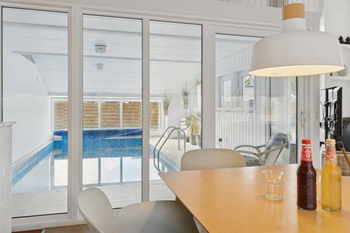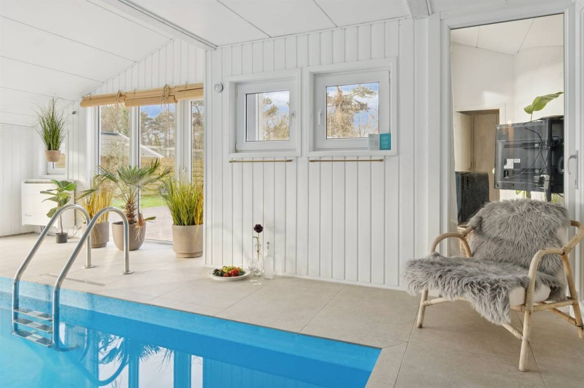 Gut gepflegtes Ferienhaus mit Innenpool, gelegen in Balka, das mit seinem schönen Sandstrand verlockt. Das Haus ist schön eingerichtet mit neuen Möbeln im hellen Wohnzimmer, wo man durch die Fenster direkt auf den kleinen See schaut, der mit seinem Leben dazu verführt, zu beobachten, was passiert. Mit etwas Glück kannst du den kleinen, flinken Eisvogel erleben, der am Teich lebt – ein seltener Anblick, der ein wenig Glück erfordert.