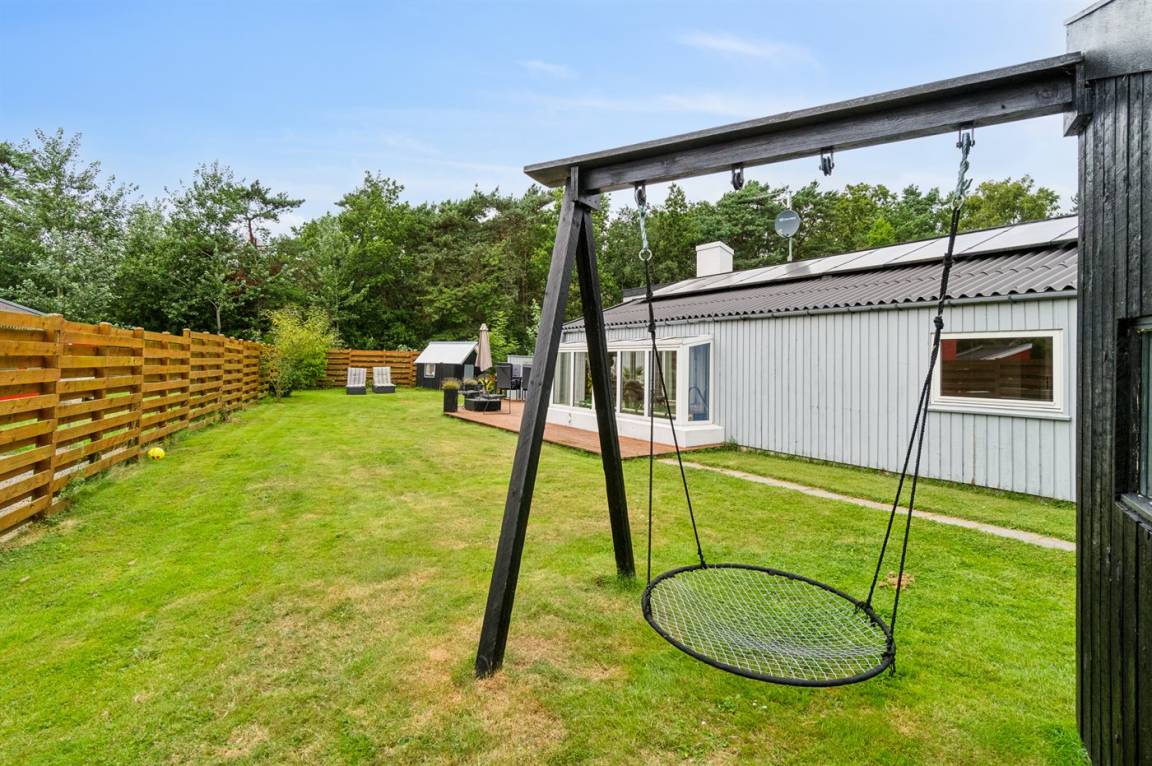 DraußenDie Ferienunterkunft liegt auf einem 1310 m² großen Naturgrundstück. Die Entfernung zum Meer beträgt 400 m. Die nächste Einkaufsmöglichkeit liegt 2000 m entfernt. Es steht ein 32 m² Terrassenareal zur Verfügung. Geräteraum. Schaukel. Es steht ein Grill zur Verfügung. Parkplatz auf dem Grundstück.