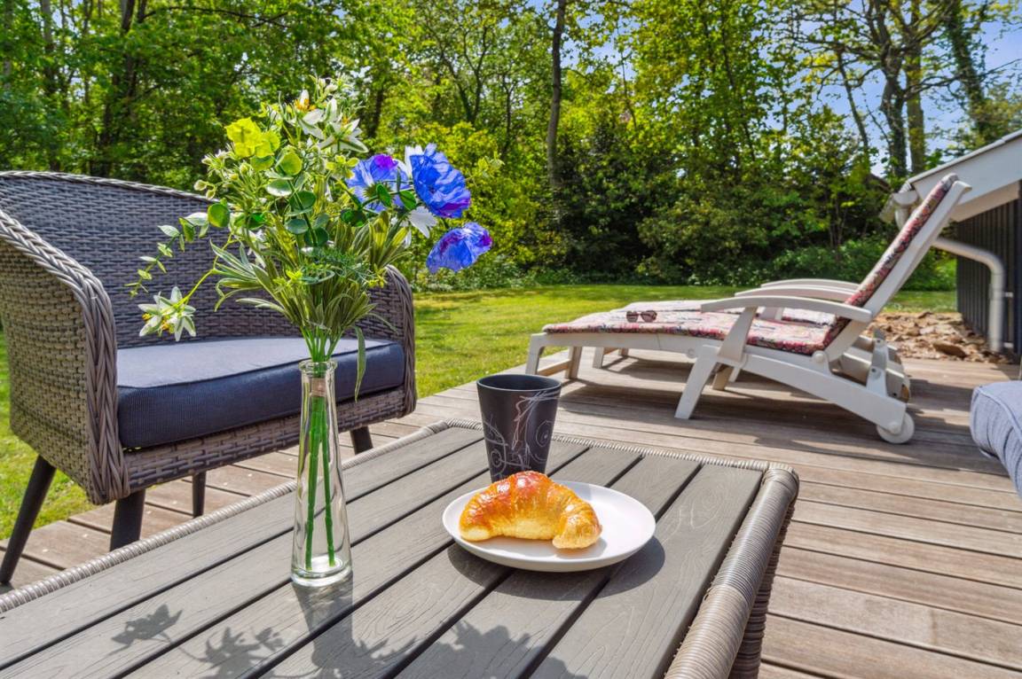 Bei schönem Wetter kann man das Leben im Freien auf der teilweise überdachten, und vor dem Wind geschützten Terrasse genießen - hier ist Platz fürs gemütliche Beisammensein, man kann aber auch bei einer Tasse Kaffee oder einem guten Buch entspannen. Auf der ostwärts gelegenen Morgenterrasse kann man den morgendlichen Kaffee genießen während man den Geräuschen der Natur lauscht.