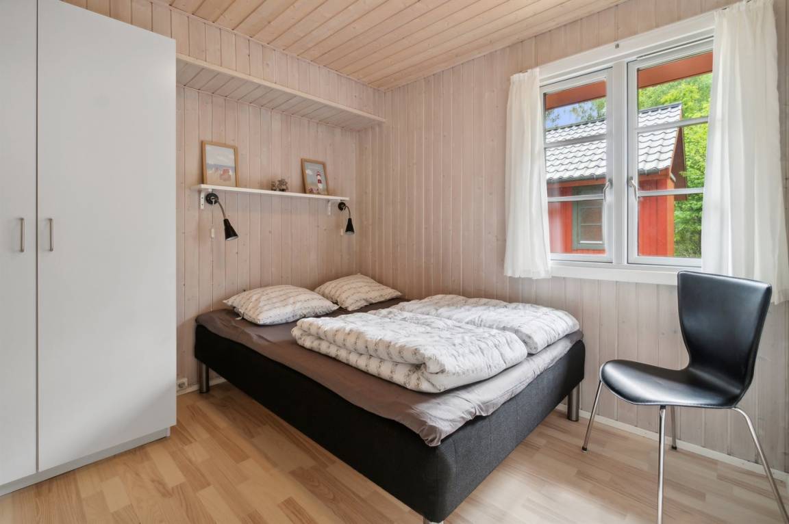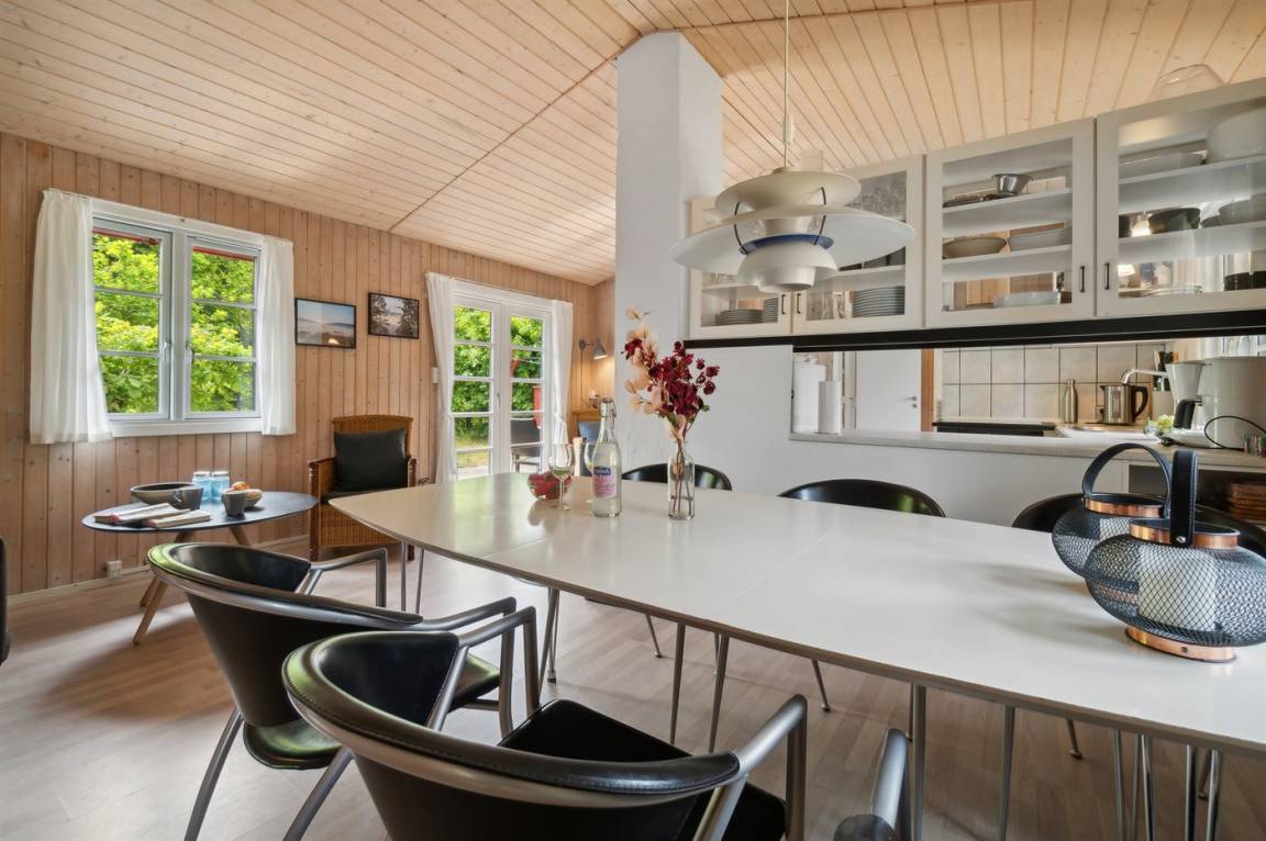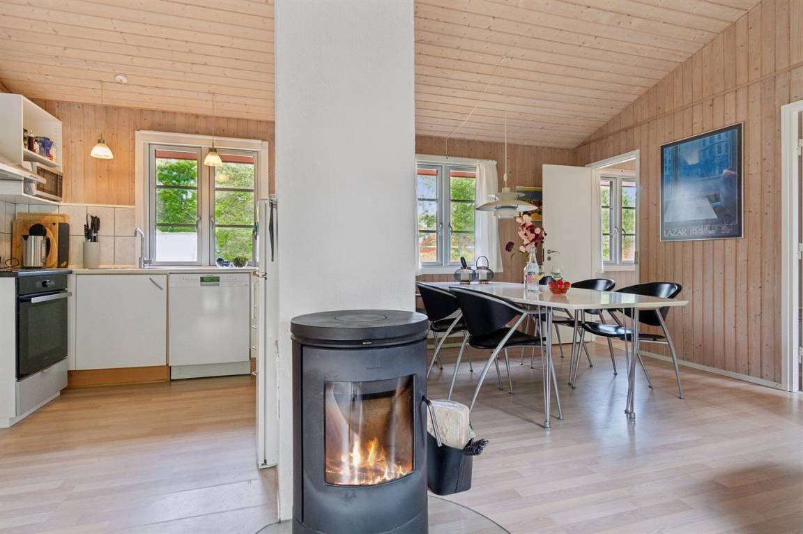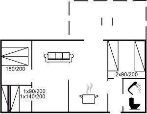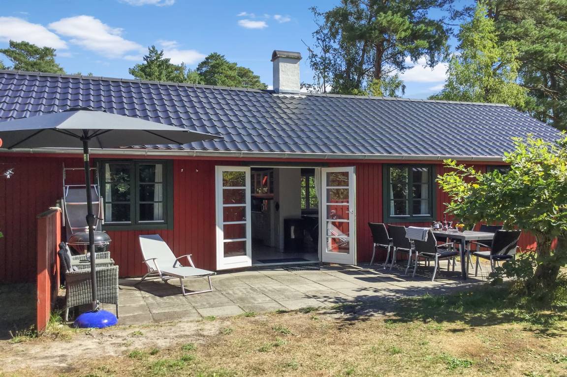 Direkt am prachtvollen, breiten Sandstrand mit perfekten Bade- und Wassersportsmöglichkeiten liegt dieses gepflegte Ferienhaus aus Holz von 1973. Das Haus ist durch die Jahre renoviert und spätestens 2008 mit u. a. neuen Thermofenstern modernisiert worden. Zum Haus gehört eine offene Terrasse mit Gartenmöbeln. Im Wohnzimmer, im Flur und in der Küche gibt es Holzböden mit Brücken, Teppichböden in den Schlafzimmern. Helles Badezimmer mit Duschnische und beheizbarem Klinkerboden. Die gut eingerichtete Küche ist mit dem Wohnzimmer kombiniert und mit u. a. Geschirrspüler, Mikrowelle und Herd mit Ceran-Feld ausgestattet. Das Wohnzimmer ist mit neuen Möbeln, Kaminofen, DVD-Spieler, CD-Spieler und TV ausgestattet. Das Haus hat 3 Schlafzimmer; 1 mit Doppelbett, 1 mit 2 Einzelbetten und 1 mit Doppelbett und 1 Oberkoje.