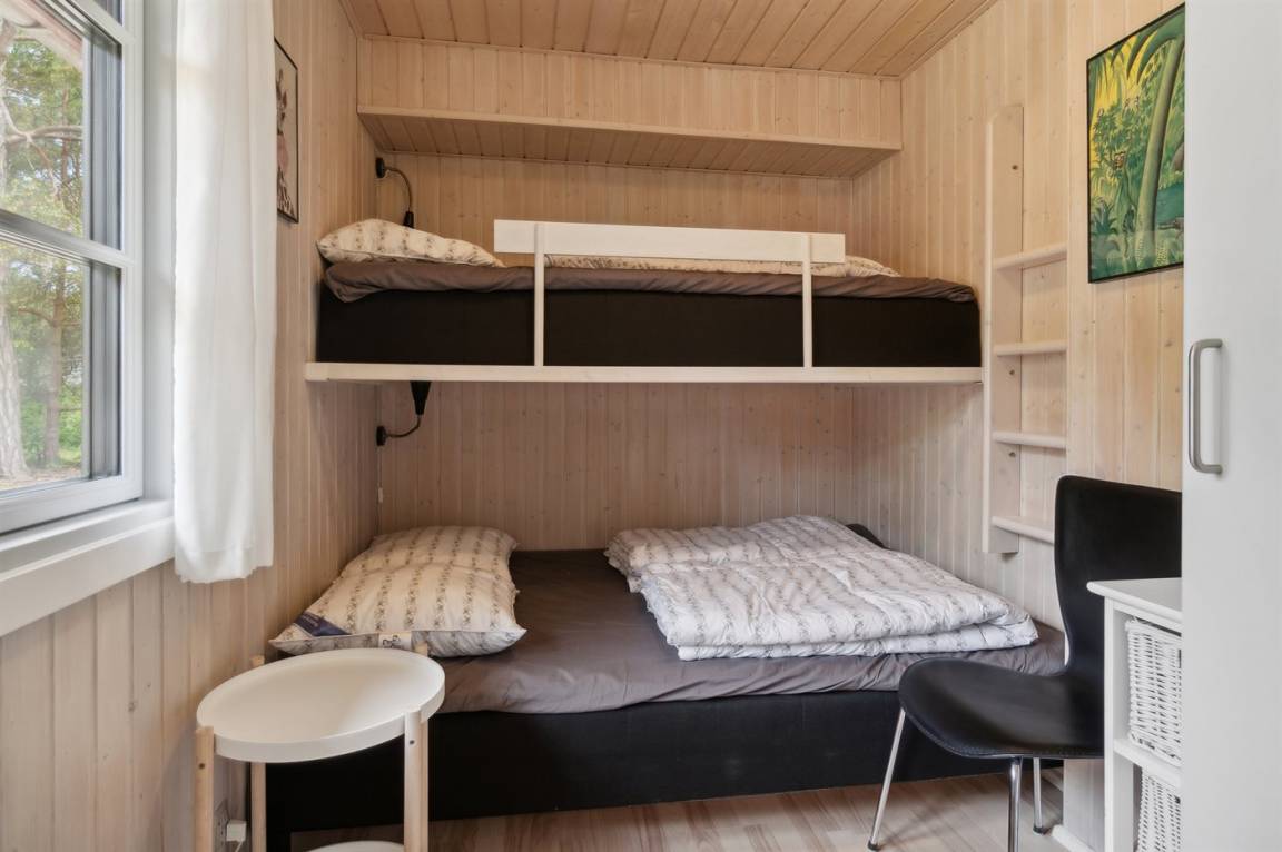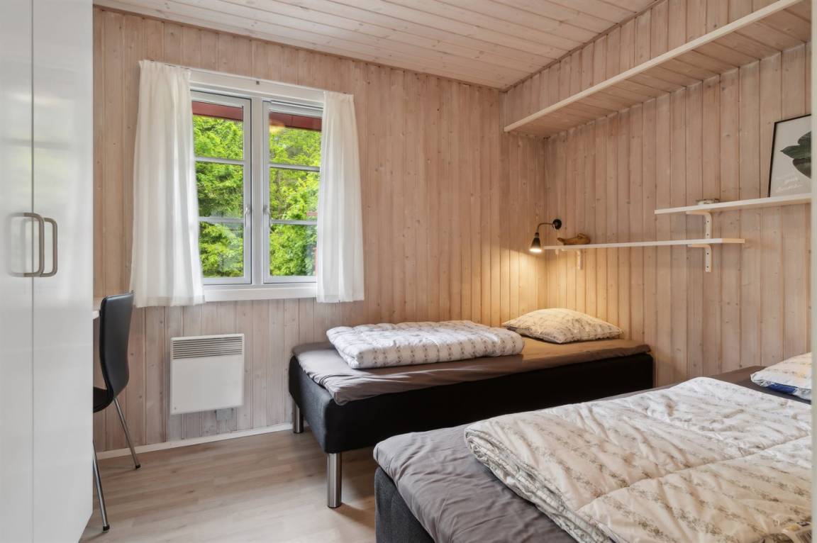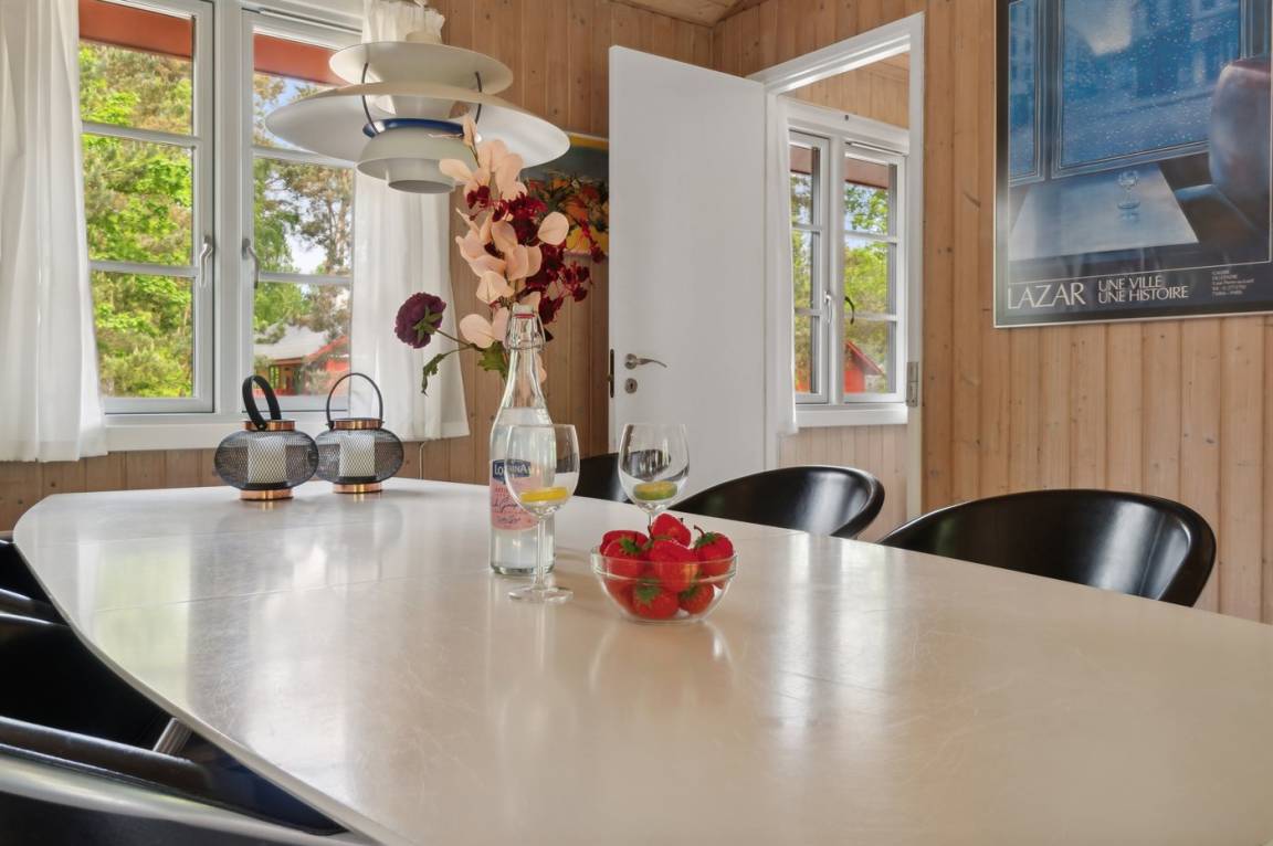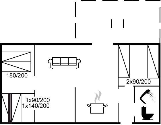 Direkt am prachtvollen, breiten Sandstrand mit perfekten Bade- und Wassersportsmöglichkeiten liegt dieses gepflegte Ferienhaus aus Holz von 1973. Das Haus ist durch die Jahre renoviert und spätestens 2008 mit u. a. neuen Thermofenstern modernisiert worden. Zum Haus gehört eine offene Terrasse mit Gartenmöbeln. Im Wohnzimmer, im Flur und in der Küche gibt es Holzböden mit Brücken, Teppichböden in den Schlafzimmern. Helles Badezimmer mit Duschnische und beheizbarem Klinkerboden. Die gut eingerichtete Küche ist mit dem Wohnzimmer kombiniert und mit u. a. Geschirrspüler, Mikrowelle und Herd mit Ceran-Feld ausgestattet. Das Wohnzimmer ist mit neuen Möbeln, Kaminofen, DVD-Spieler, CD-Spieler und TV ausgestattet. Das Haus hat 3 Schlafzimmer; 1 mit Doppelbett, 1 mit 2 Einzelbetten und 1 mit Doppelbett und 1 Oberkoje.