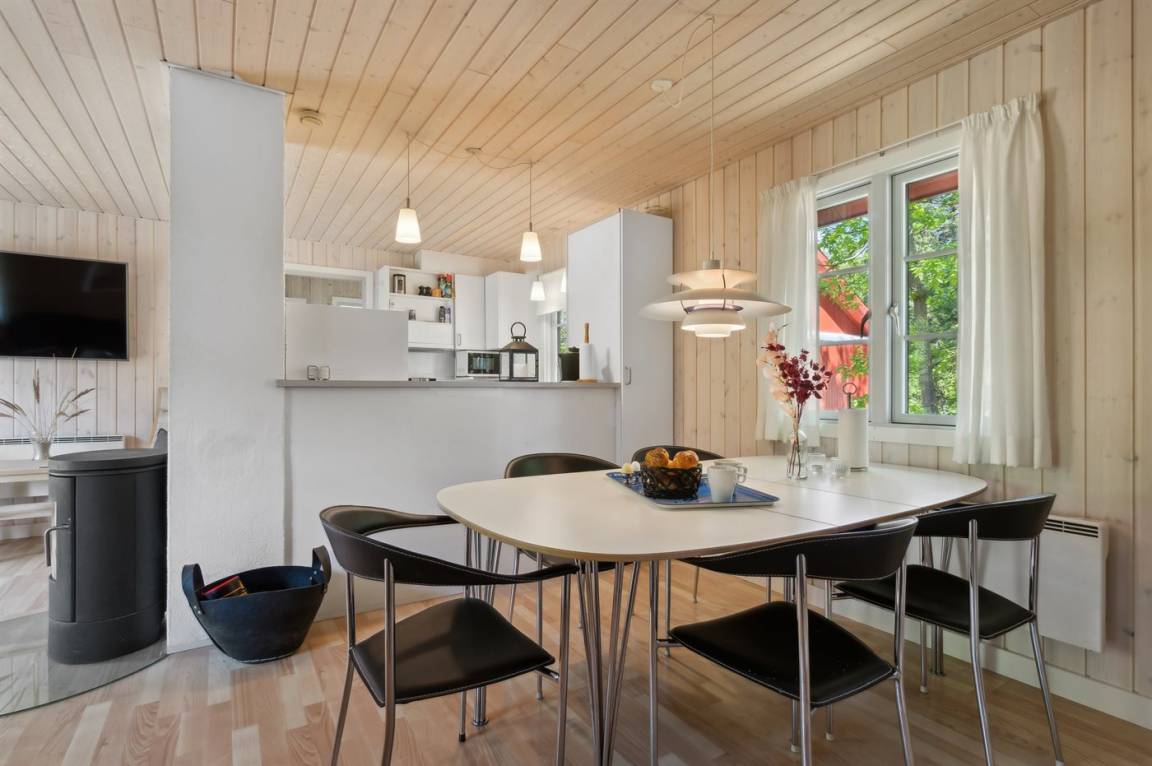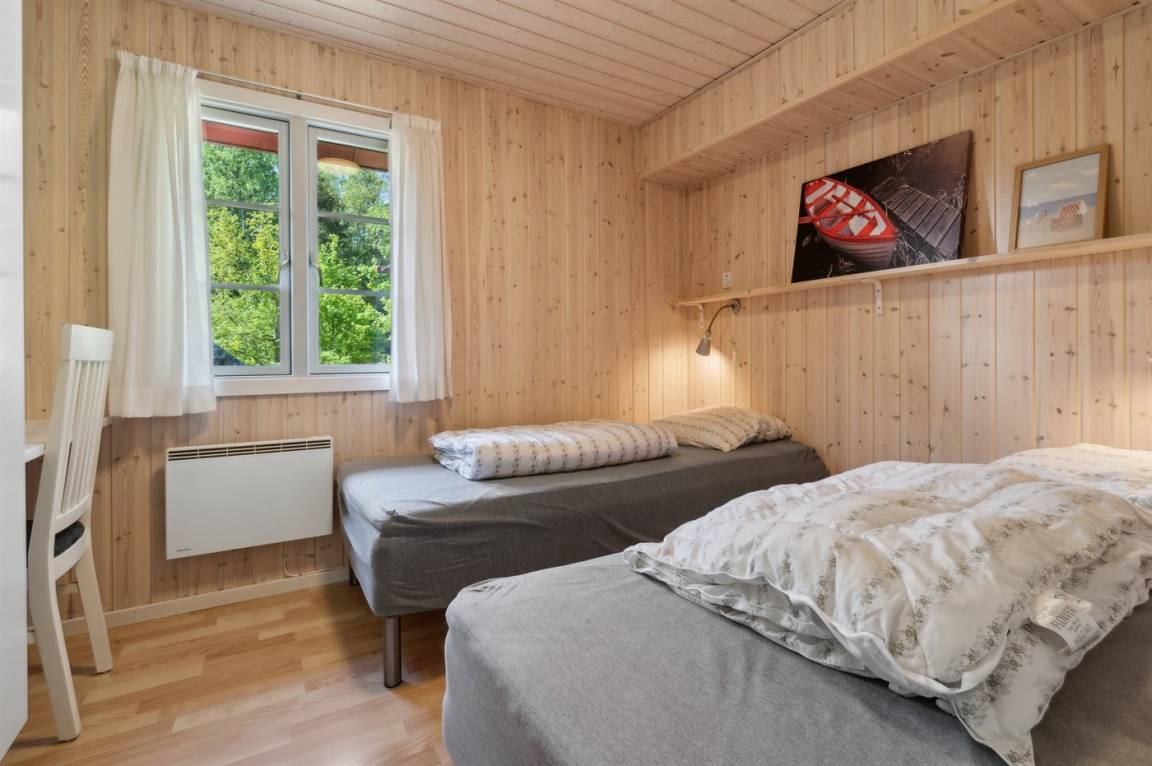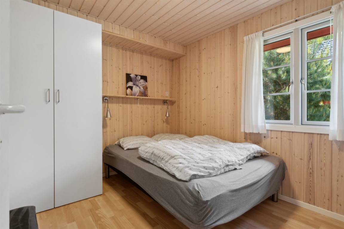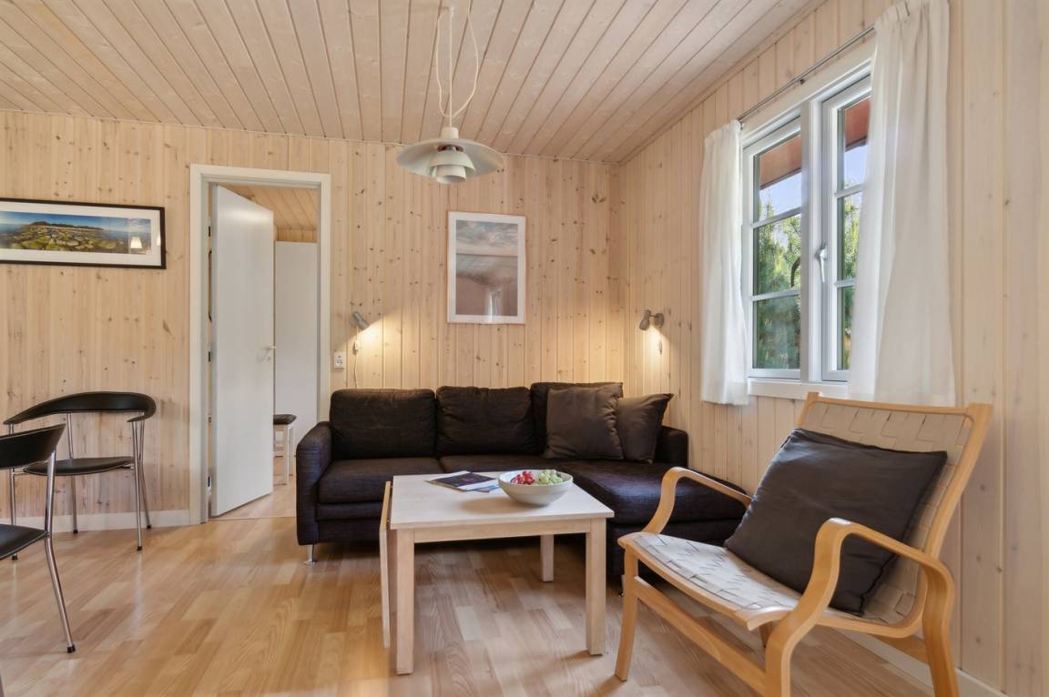 2019 wurden die alten Türen und Fenster mit neuen Türen und Fenster mit Thermoverglasung ausgetauscht. Zum Haus gehört eine offene Terrasse mit Gartenmöbeln. Nettes Badezimmer mit beheizbarem Klinkerboden und Duschnische. Holzböden in den übrigen Räumen. Die Küche ist u. a. mit Geschirrspüler, Mikrowelle, Umluftofen und Herd mit Ceran-Feld ausgestattet. Im Wohnzimmer, mit Zutritt zur Terrasse, finden Sie Kaminofen, CD-Spieler und 55" Fernseher. Die Schlafplätze verteilen sich auf 3 Zimmer; 1 mit Doppelbett, 1 mit 2 Einzelbetten und 1 mit Etagenbett. Außerdem ist ein Kinderbett vorhanden.