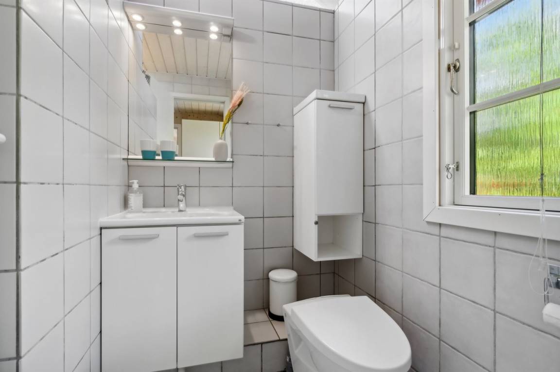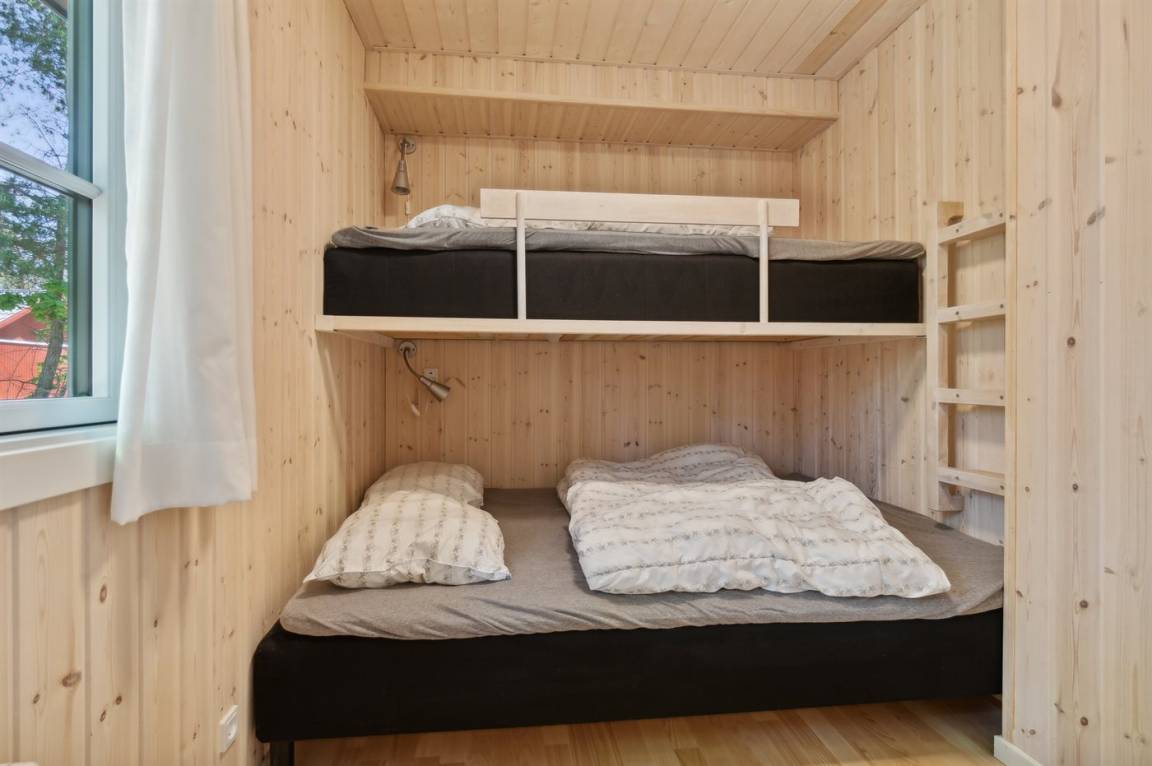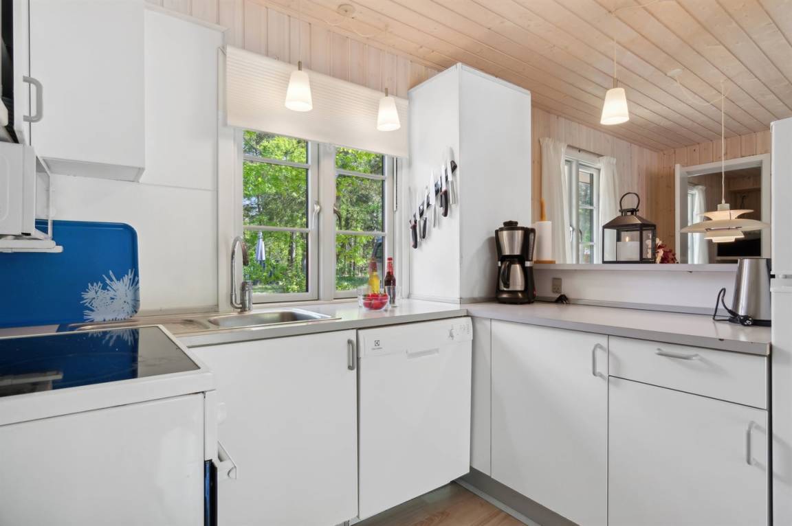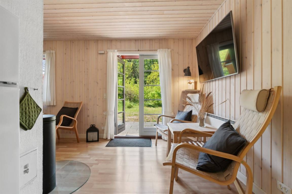 2019 wurden die alten Türen und Fenster mit neuen Türen und Fenster mit Thermoverglasung ausgetauscht. Zum Haus gehört eine offene Terrasse mit Gartenmöbeln. Nettes Badezimmer mit beheizbarem Klinkerboden und Duschnische. Holzböden in den übrigen Räumen. Die Küche ist u. a. mit Geschirrspüler, Mikrowelle, Umluftofen und Herd mit Ceran-Feld ausgestattet. Im Wohnzimmer, mit Zutritt zur Terrasse, finden Sie Kaminofen, CD-Spieler und 55" Fernseher. Die Schlafplätze verteilen sich auf 3 Zimmer; 1 mit Doppelbett, 1 mit 2 Einzelbetten und 1 mit Etagenbett. Außerdem ist ein Kinderbett vorhanden.