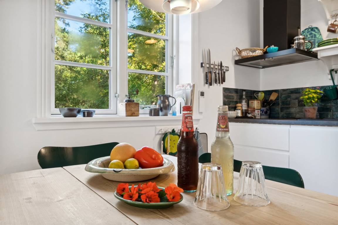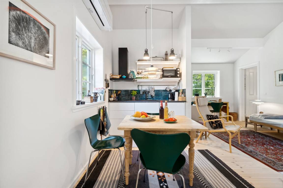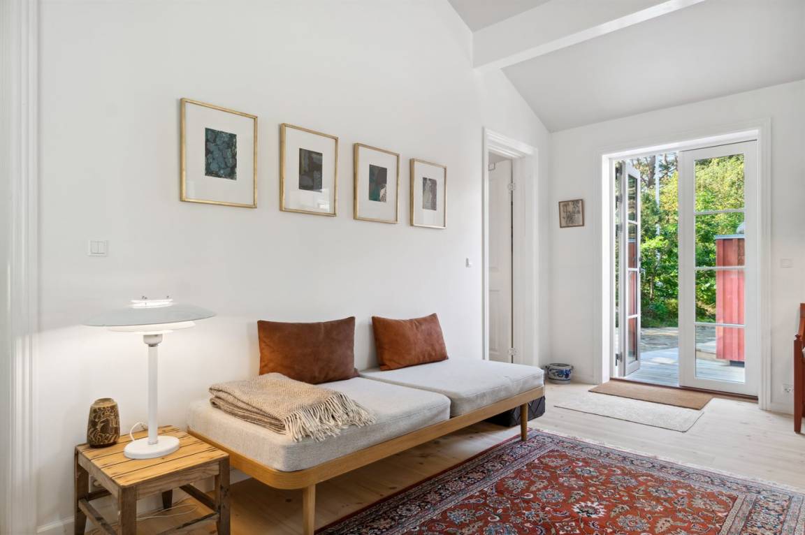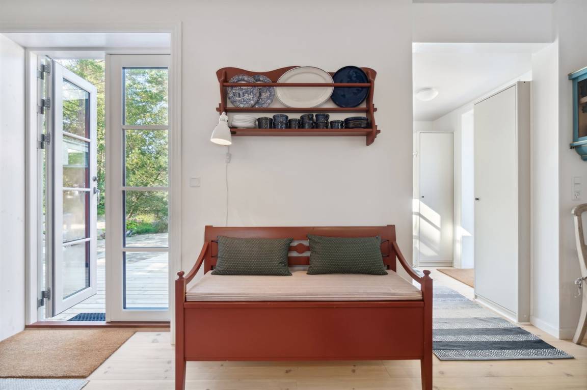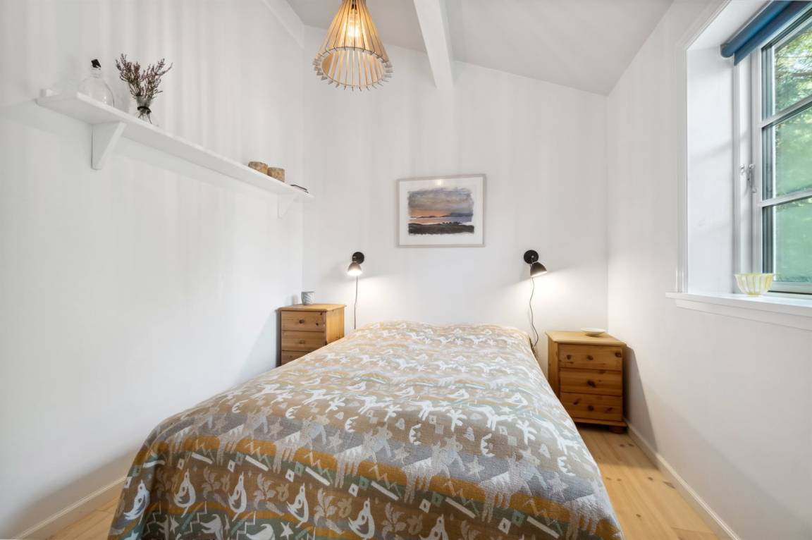 Der Weg zum Sandstrand führt über einen kleinen Pfad, wo sich der ausgedehnte Strand mit einem herrlichen Blick auf das Meer offenbart. Ganz in der Nähe liegt auch Snogebæk, das sicherlich verlockend ist, zum Teil, weil das alte Fischerdorf noch einige wenige aktive Fischer hat, und besonders der spezielle Inselhafen gibt einen guten Einblick in die Dominanz des Meeres, wenn es seine Zähne zeigt. Supermarkt, handgemachte Schokolade, Bio-Eis, Räucherei, Pizzeria und eine Reihe weiterer guter Angebote befinden sind vom Haus aus zu Fuß errichbar.