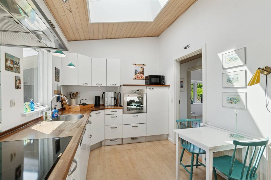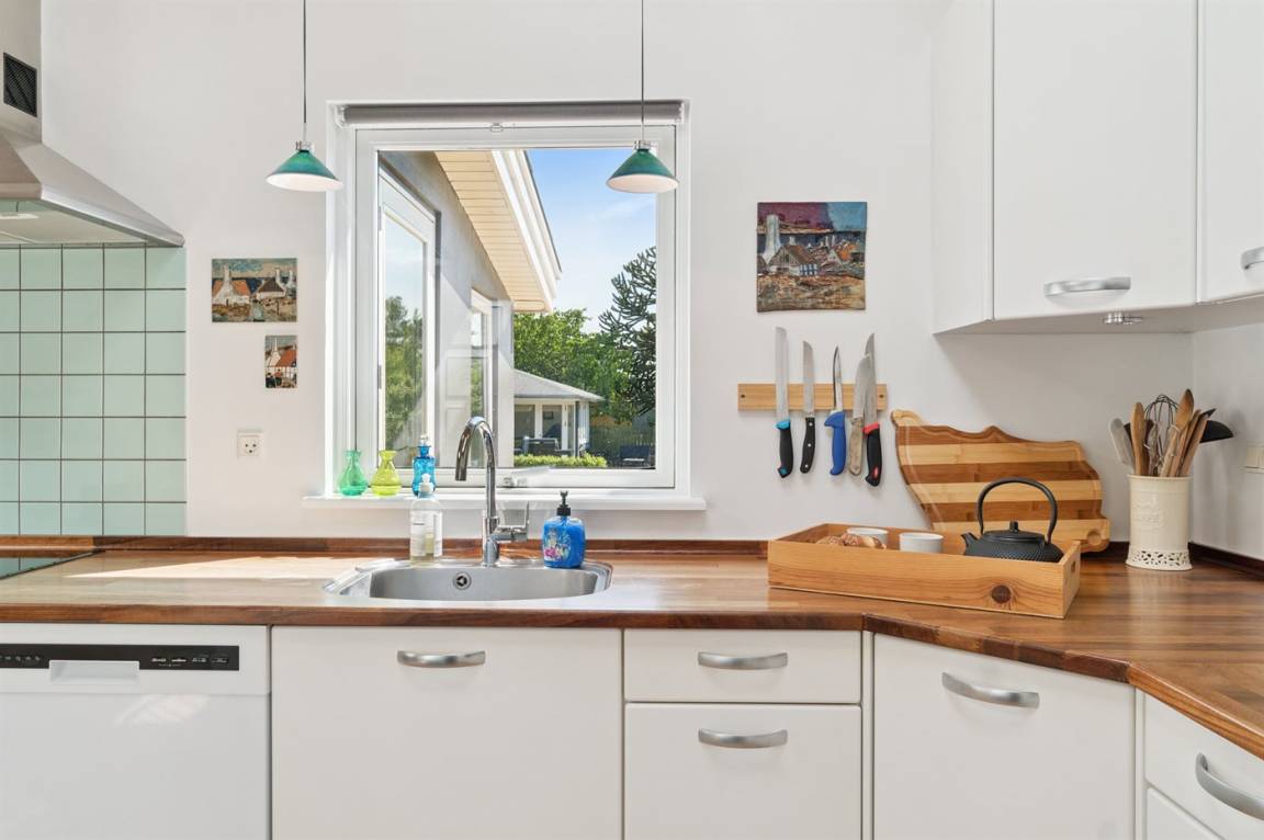 Das Haus präsentiert sich gepflegt und ordentlich auf einem größeren Grundstück, das von Hecken und Zäunen umgeben ist. Innen ist das Ferienhaus hell mit weißen Wänden und hellen Decken. Es ist schön und ordentlich möbliert – mit einer gemütlichen Einrichtung, in der du deinen Urlaub in ruhiger Umgebung genießen kannst. Küche und Bad wurden modernisiert und bieten viel Platz. Das Dachfenster in der Küche sorgt für gutes Licht beim Zubereiten des Urlaubsessens für die Familie. Im Hauswirtschaftsraum hast du viel Platz für Aufbewahrung und praktische Aufgaben. Gute Betten in den Schlafzimmern sorgen für einen erholsamen Schlaf – auch daran wurde gedacht.