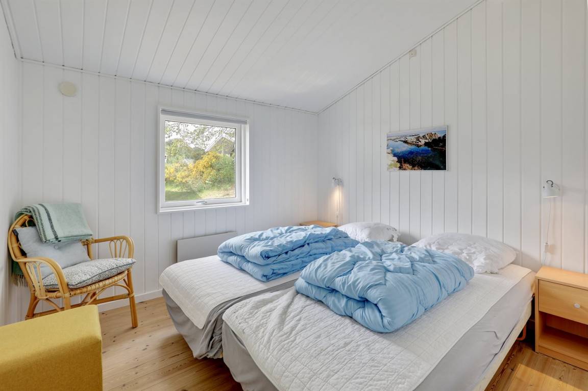 Mit einer phantastischen Lage in der 1. Dünenreihe direkt am weißen Sandstrand bei Snogebæk und mit herrlicher Aussicht auf das Meer finden Sie dieses schöne Ferienhaus. Das Ferienhaus liegt nur 20 m vom Strand entfernt und von der zum Teil überdachten Terrasse können Sie den atemberaubenden Sonnenaufgang genießen. Das Wohnzimmer, die Küche und das Badezimmer wurden 2022 renoviert und modernisiert mit u. a. Fußbodenheizung in den benannten Räumen. Das Haus ist mit 4 Schlafzimmer eingerichtet; 2 mit Doppelbett und 2 mit je 2 Einzelbetten. Es gibt ein großes Badezimmer mit Duschnische und Fußbodenheizung sowie eine Gästetoilette. Die Küche liegt in Verbindung mit dem Ess-/Wohnzimmer und ist mit Tiefkühlgerät, Geschirrspüler, Herd mit Induktion und Mikrowelle ausgestattet. Das Ess-/Wohnzimmer, vom dem aus Sie die Aussicht auf das Meer genießen können, ist mit TV mit Gemeinschaftsantenne und Radioprogramme eingerichtet. An weiterer Ausstattung können kostenlose, kabellose Internetverbindung (50/50 Mbit), Waschmaschine und Wäschetrockner erwähnt werden. Um den Verkehr von Autos in der Nähe der Häuser und am Strand zu Vermeiden wurde ein gemeinsamer Parkplatz eingerichtet. Sie können jedoch bis zum Haus fahren und Ihr Gepäck ein- und ausladen. Das Haus liegt ungefähr 10 Minuten Gang von dem alten Fischerdorf Snogebæk entfernt – hier finden Sie u.a. ein lebhaftes Hafen- und Fischermilieu, Chokoladenfabrik, Räuchereien, Minigolf und mehrere gute Restaurants.