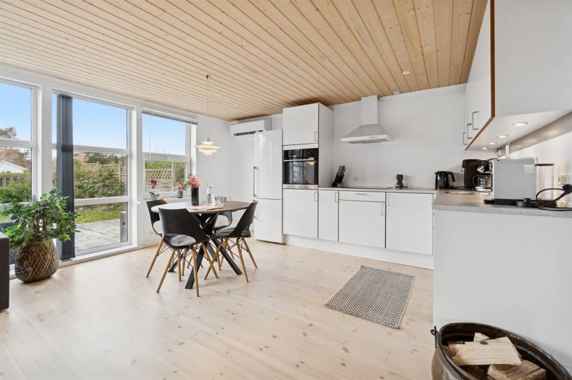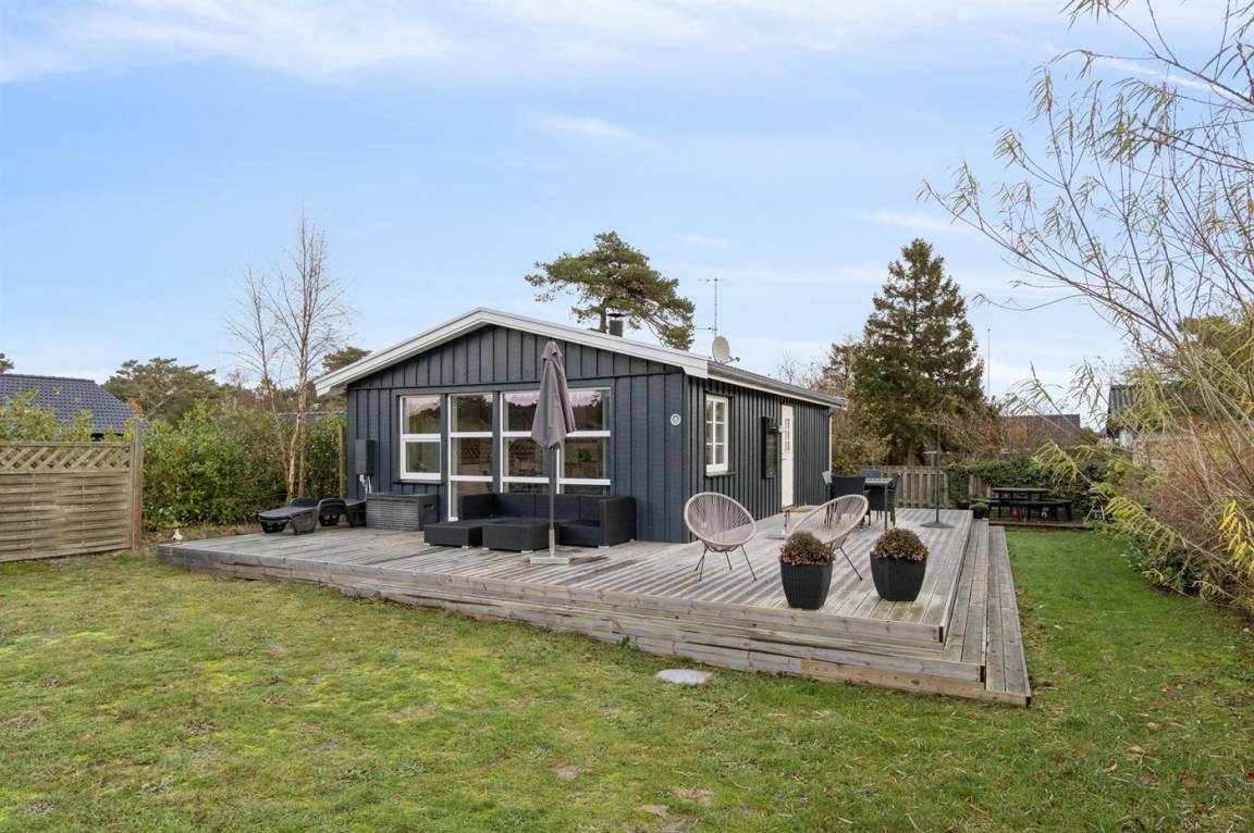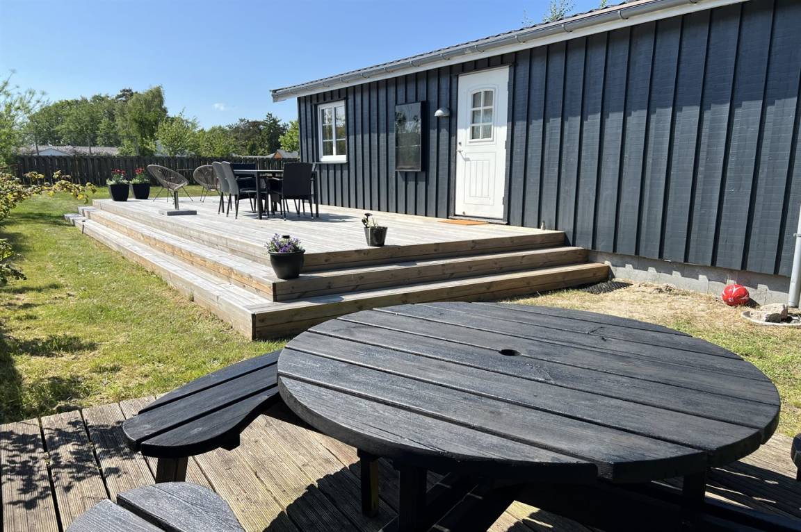Dieses Ferienhaus liegt auf einem eingezäunten Grundstück – nicht weit vom Balka Strand entfernt. Zum Haus, das schön und modern eingerichtet ist, gehört eine große Holzterrasse.