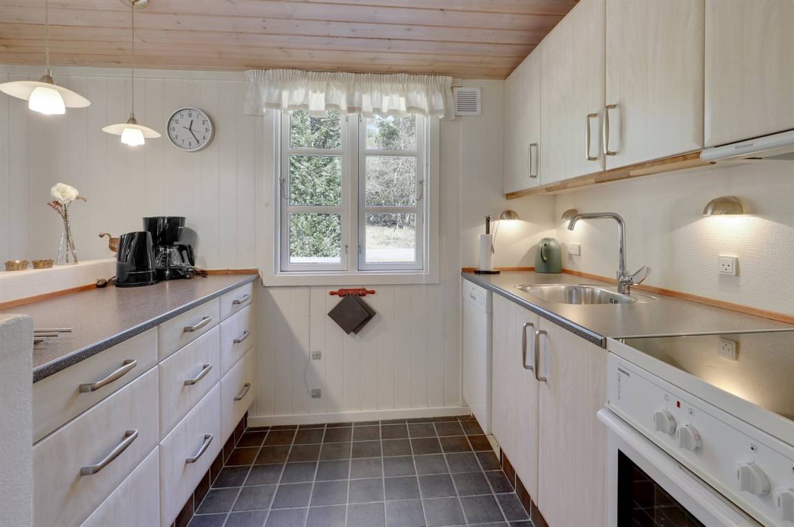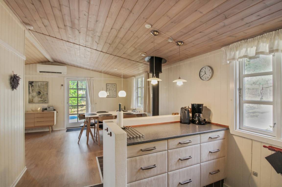 Ein gepflegtes und gemütlich eingerichtetes Ferienhaus in ruhiger Umgebung auf einem großen, ungestörten Grundstück in der Nähe vom schönen Sandstrand bei Dueodde. Nicht weit vom Haus entfernt liegt die Stadt Snogebæk mit Supermarkt, Restaurants und einer Räucherei. In der Nähe des Ferienhauses befindet sich ebenfall ein 18-Loch-Golfplatz.