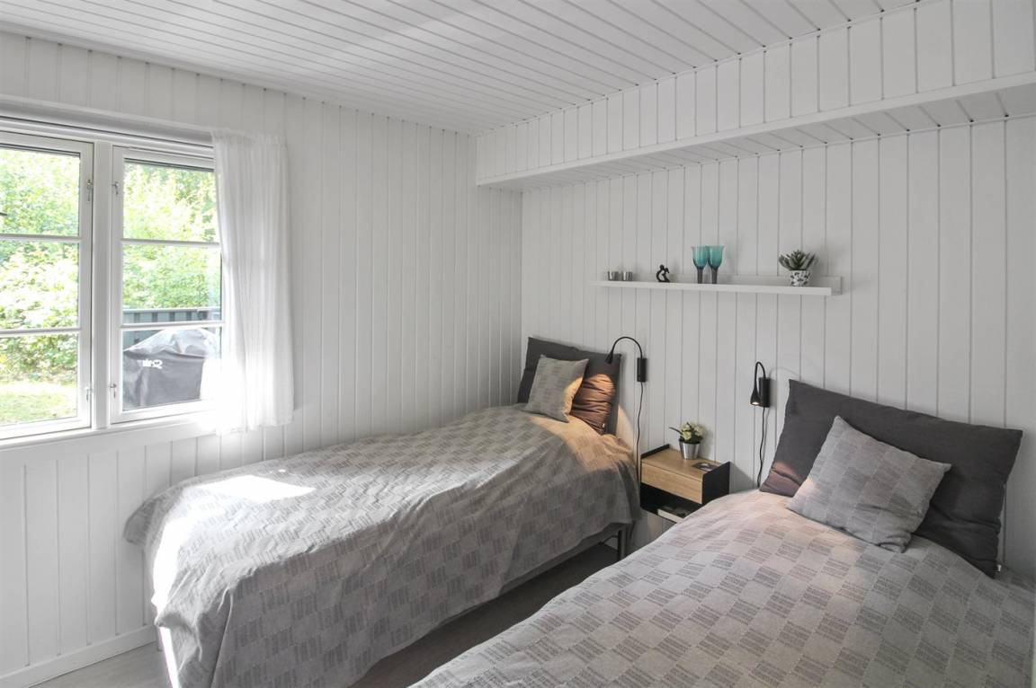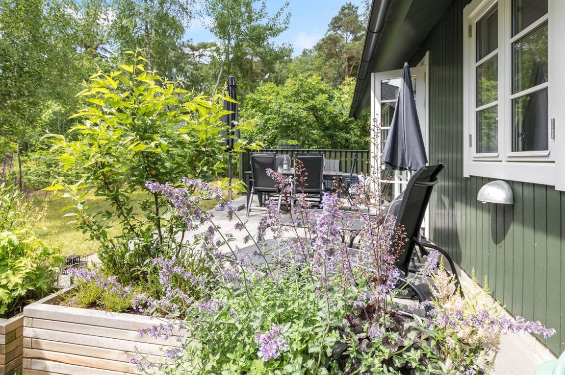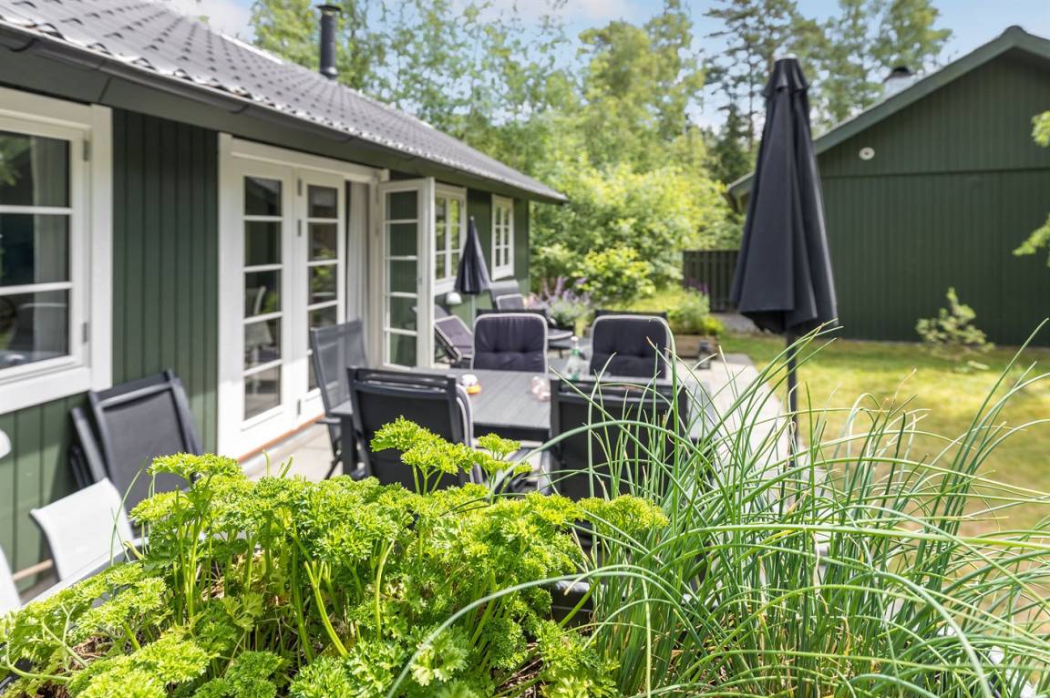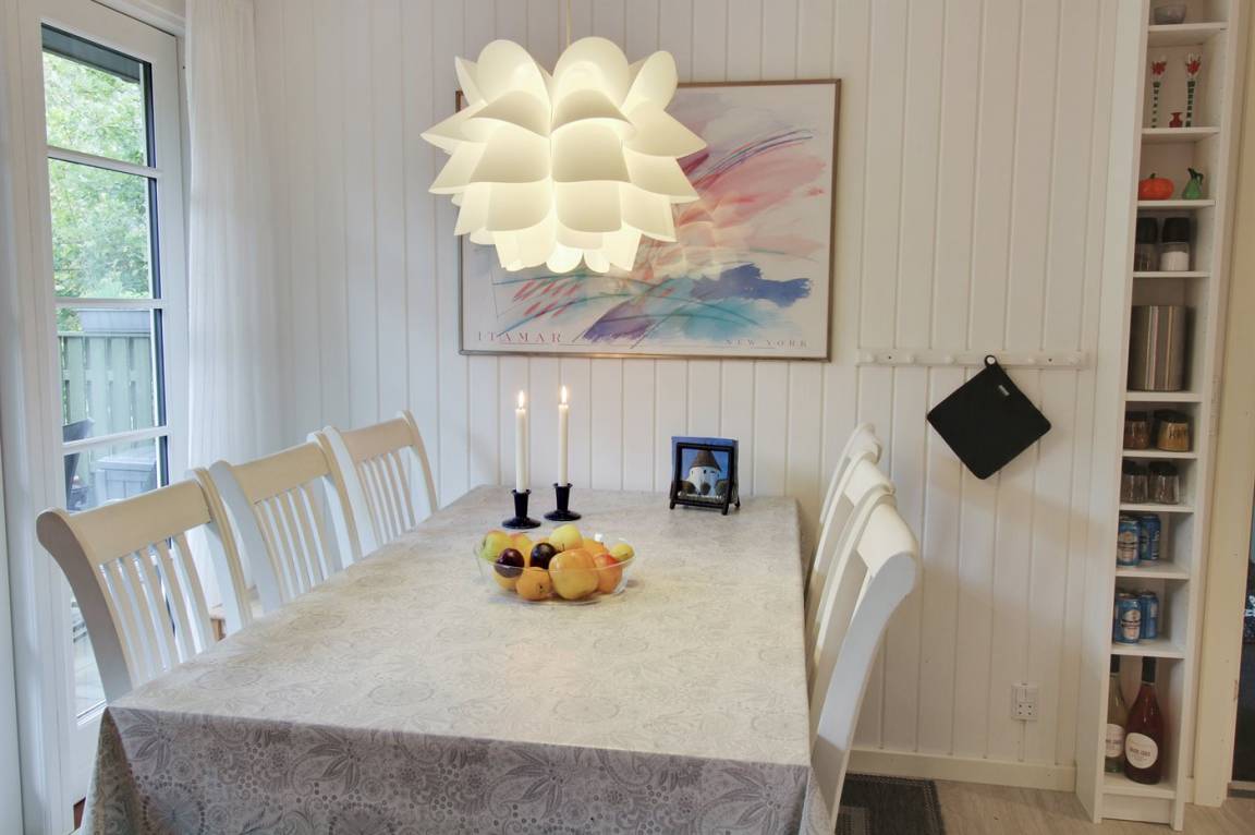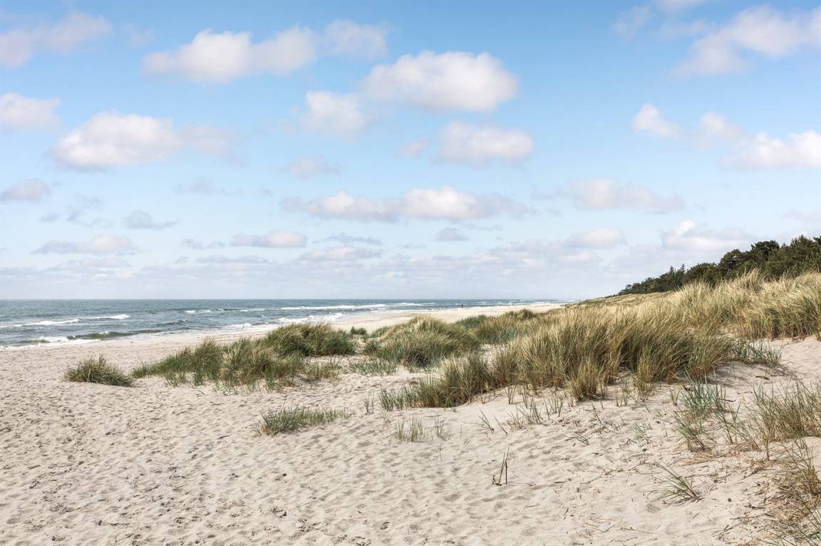 Dicht am prachtvollen, breiten Sandstrand mit perfekten Bade- und Wassersportmöglichkeiten liegt dieses schöne Ferienhaus aus Holz, 1973 gebaut und 2017 mit neuer Küche modernisiert. In allen Räumen sind die Wände und Decken weiß gestrichen und die Böden sind mit hellem Holz augelegt – dieses verleiht dem Haus ein helles Ambiente.