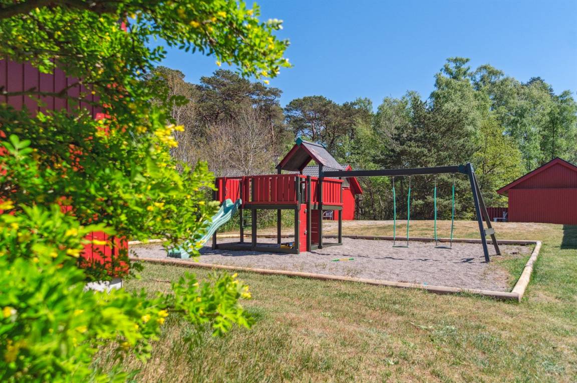 In der Gegend gibt es Schaukeln, Rutschen und einen Sandkasten sowie die Möglichkeit, Fußball, Basketball und Boule zu spielen. Das große Naturgrundstück zwischen den Häusern bietet reichlich Platz zum Spielen. Das Haus befindet sich hinter dem kleinen Wall in der Nähe des Gemeinschaftshauses.