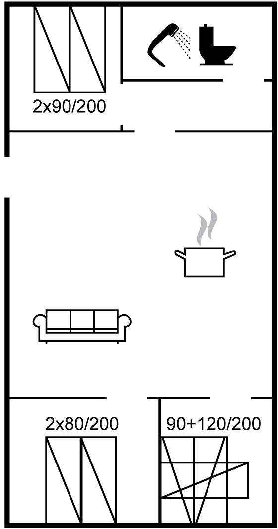 SchlafverhältnisseDie Schlafplätze verteilen sich auf 3 Schlafräume. 6 Schlafplätze in Doppelbetten.1 Schlafplatz in einem Etagenbett.