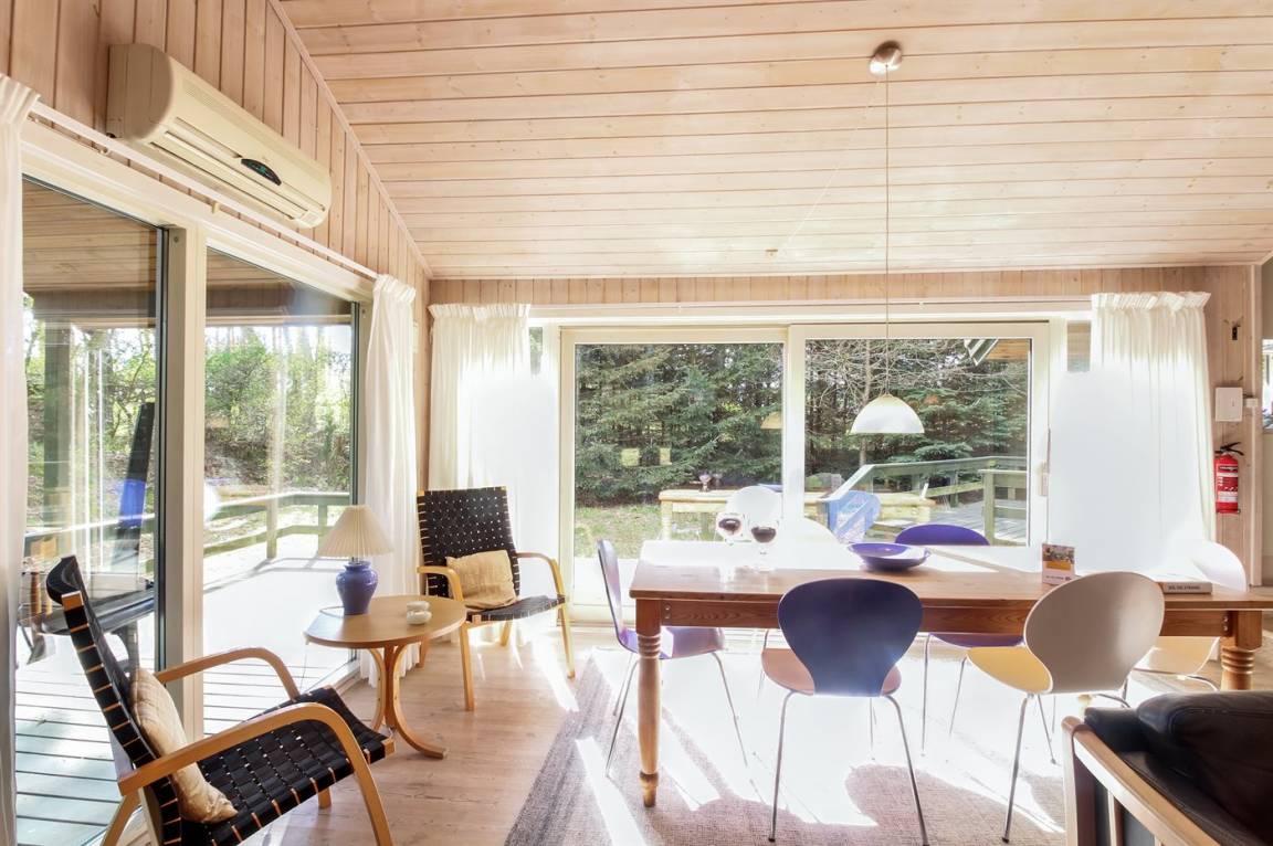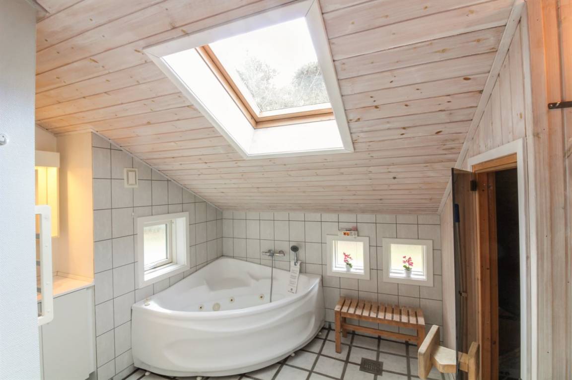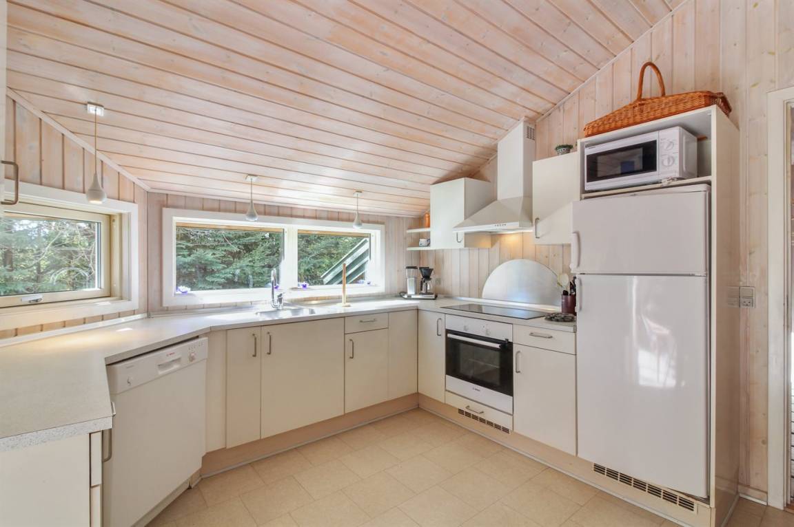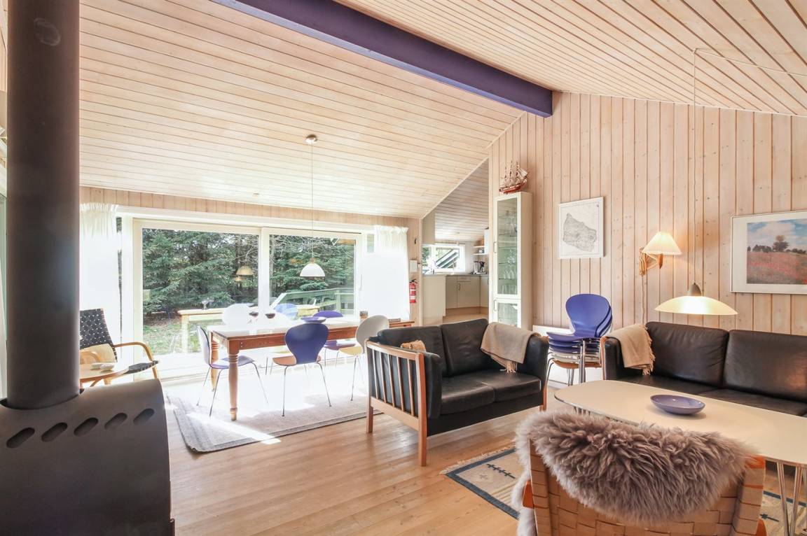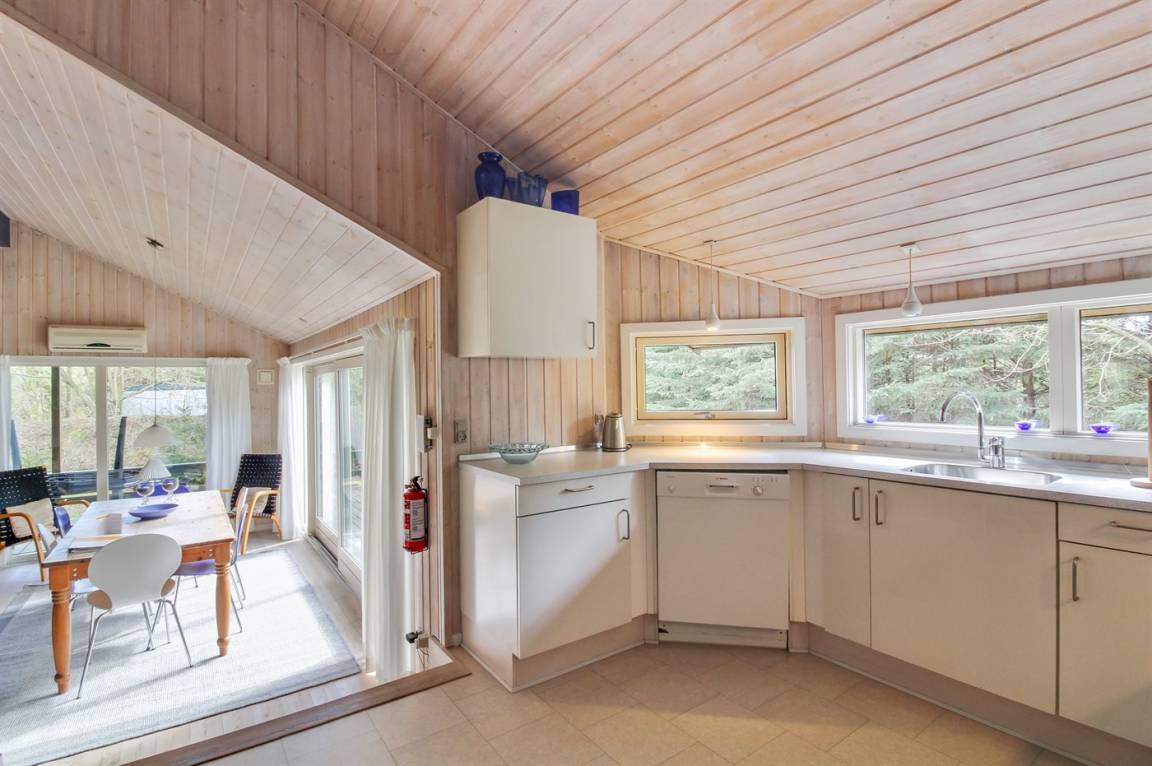 Dieses schöne, geräumige Ferienhaus aus Holz ist 1996 auf einem herrlichen Naturgrundstück gebaut, nur 400 m vom Strand entfernt. Zum Haus gehört eine teilweise überdachte Terrasse mit Gartenmöbeln sowie ein Schuppen. Die Böden sind aus hell gebeiztem Kiefernholz. Die Wände und schrägende Decken sind mit hellem Holz verkleidet. Herrliche Whirlpool-Abteilung mit beheizbarem Klinkerboden, Duschnische, Solarium sowie direktem Zutritt zur Sauna des Hauses. Schönes Badezimmer mit Duschnische und Toilette. Außerdem steht eine Gästetoilette zur Verfügung. Hauswirtschaftsraum mit Waschmaschine und Wäschetrockner. Die Küchenabteilung ist u. a. mit Kühl-Gefrierschrank, Geschirrspüler, Mikrowelle, Herd mit Ceran-Feld und Umluftofen ausgestattet. Das gemütliche Wohnzimmer enthält Kaminofen, Stereoanlage mit CD-Spieler und Flatscreen-TV mit digitalem Satellitenanschluss. Kostenlose Internetverbindung vorhanden (Computer ist mitzubringen). 4 gute Schlafzimmer. Außerdem 2 Schlafplätze im Alkoven im Wohnzimmer. Carport zur Verfügung. Das ganze Jahr hindurch ein attraktives, gut ausgestattetes Ferienhaus.