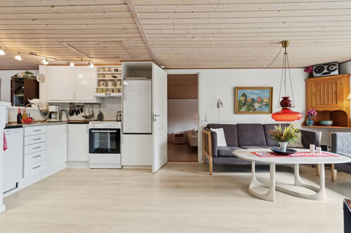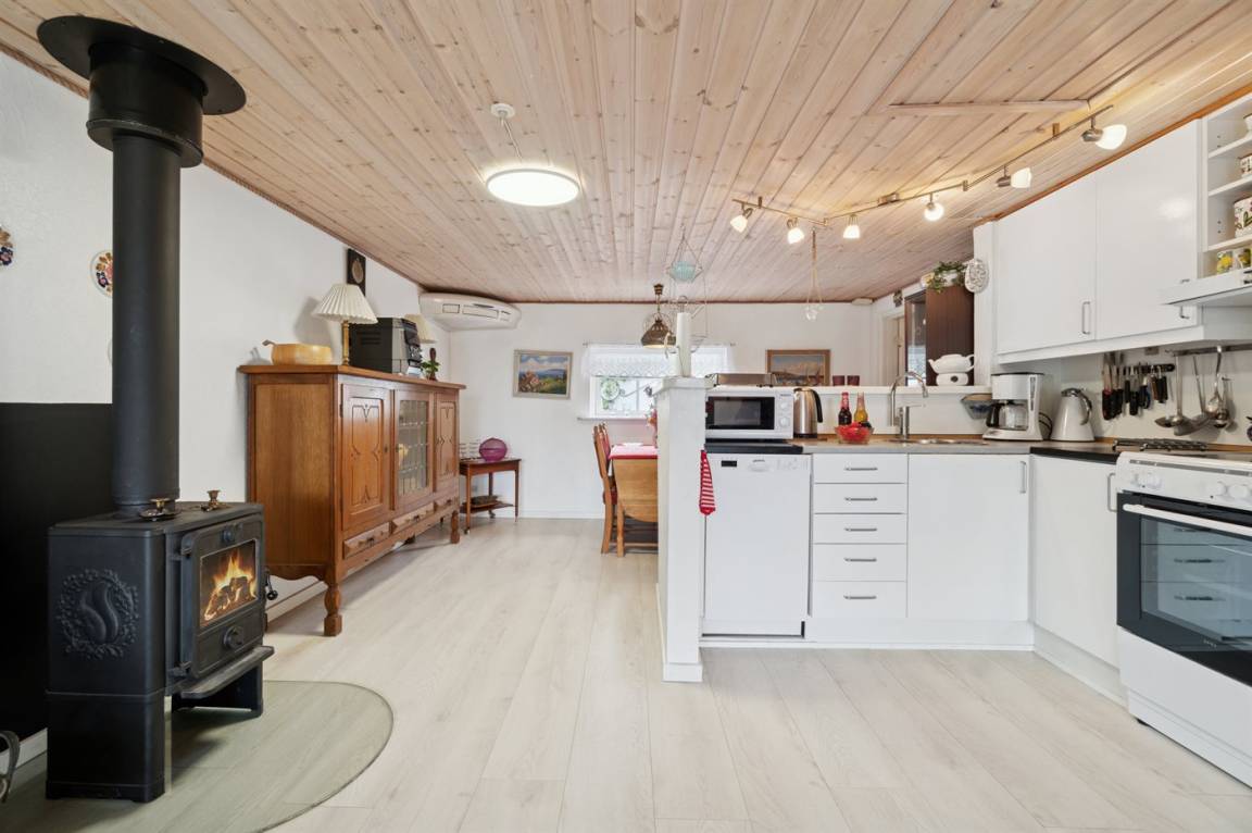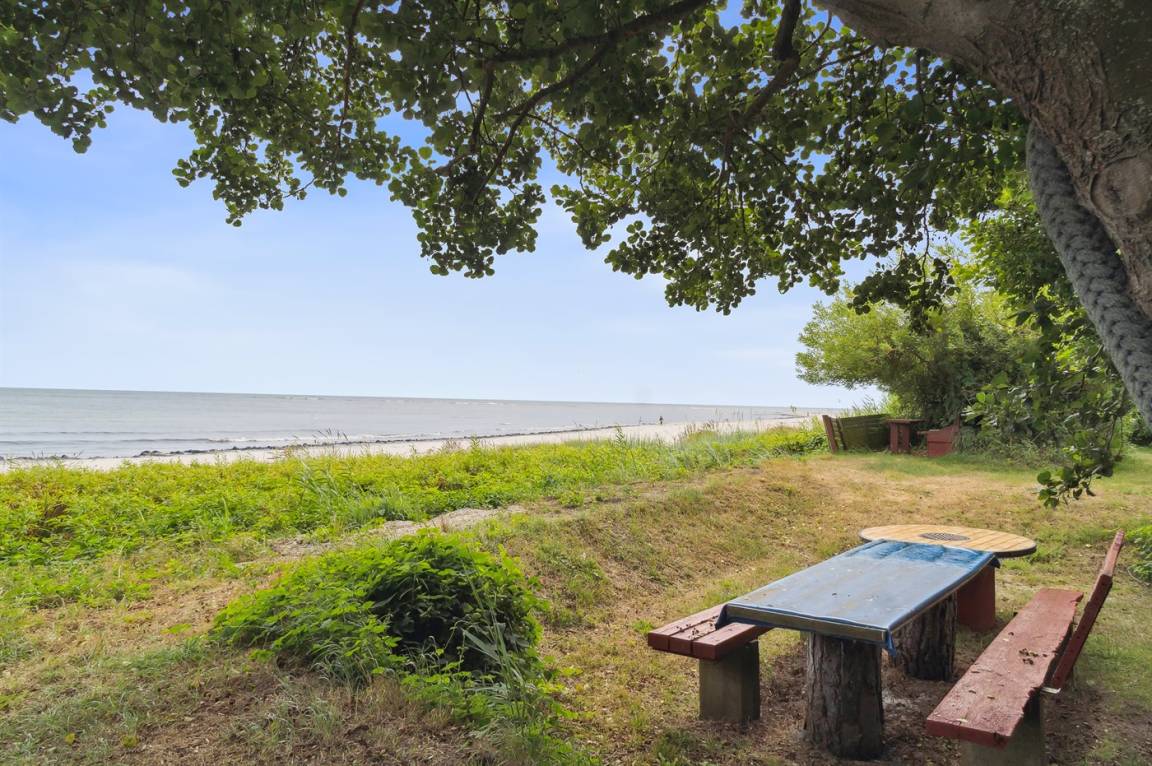 Ein gepflegtes und gemütlich eingerichtetes Ferienhaus auf einem Strandgrundstück – nur 50?Meter vom Wasser entfernt. Das Haus ist von einer teilweise überdachten Terrasse umgeben, auf der du den Blick über das Grundstück und das Meer genießen kannst – gut geschützt vor dem Wind.