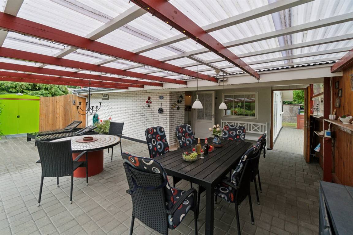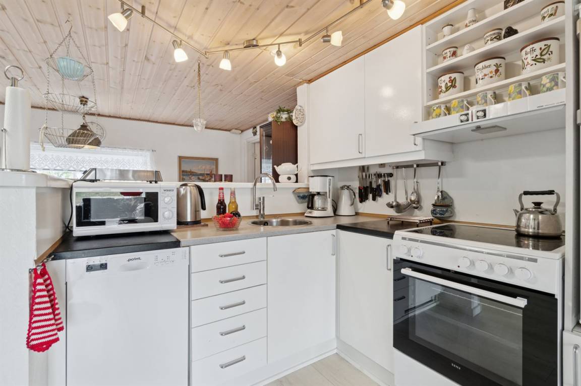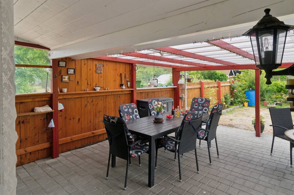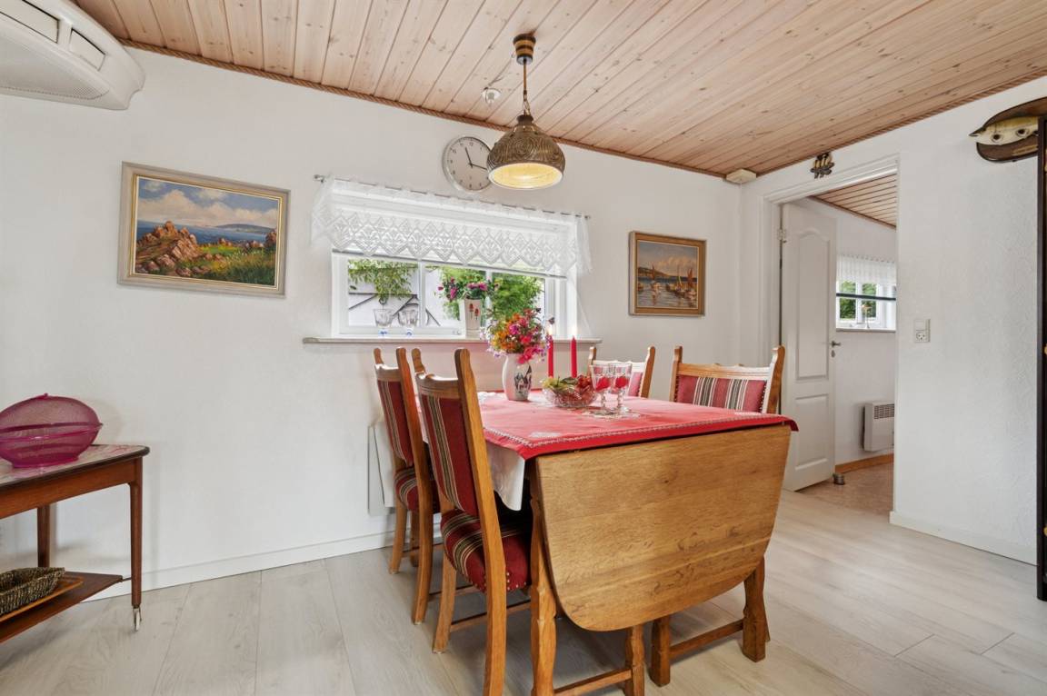 Ein gepflegtes und gemütlich eingerichtetes Ferienhaus auf einem Strandgrundstück – nur 50?Meter vom Wasser entfernt. Das Haus ist von einer teilweise überdachten Terrasse umgeben, auf der du den Blick über das Grundstück und das Meer genießen kannst – gut geschützt vor dem Wind.