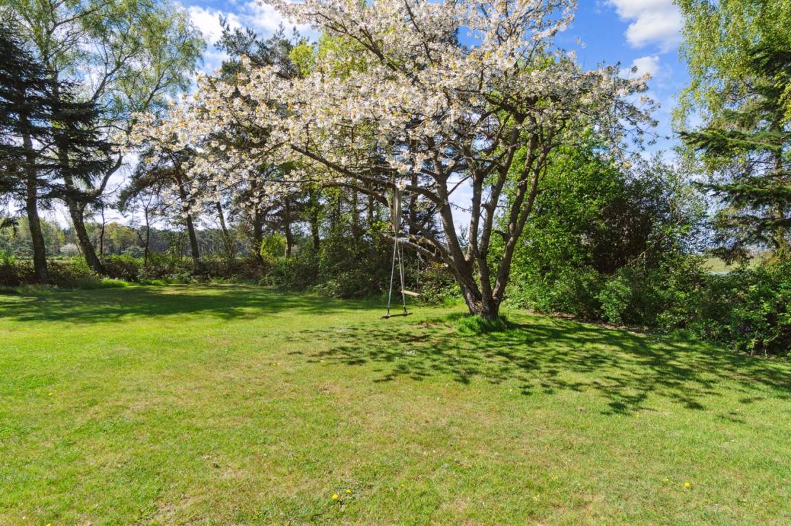 Das Haus liegt auf einem großen, schönen Naturgrundstück. Hier kannst du ruhige Stunden im Freien genießen – in entspannter Umgebung, wo dir ein gemeinsames Trampolin und eine Schaukel frei zur Verfügung stehen.
