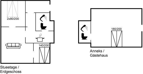 SchlafverhältnisseDie Schlafplätze verteilen sich auf 3 Schlafräume. 6 Schlafplätze in Doppelbetten.- 2 von diesen Schlafplätzen befinden sich im Gästehaus.