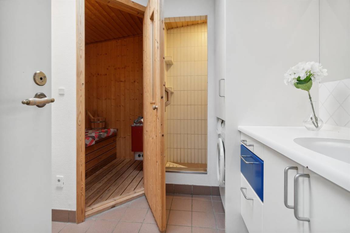 WC und BadEs gibt 1 Badezimmer mit Duschnische und 1 Toilette.. Fußbodenheizung in 1 Badezimmer. Es steht eine Sauna zur Verfügung in der Sie sich so richtig entspannen können.