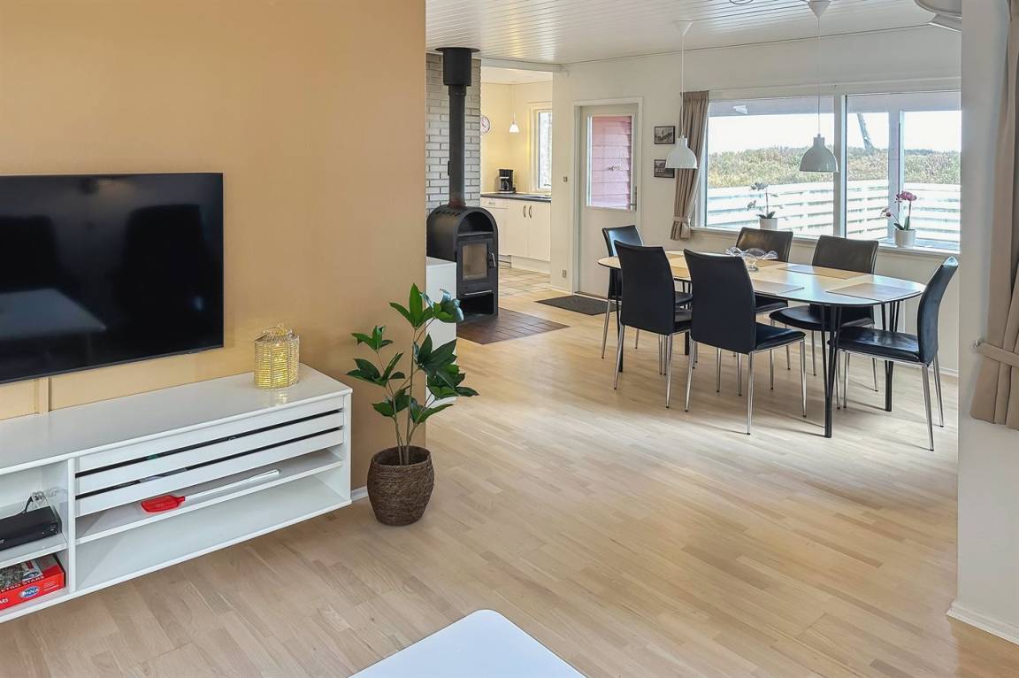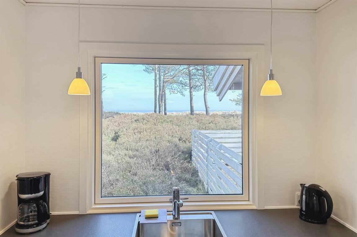 Auch im Wohnzimmer und in der Küche kann man sich über den Anblick der Natur und des Meeres freuen, und auf der ungestörten Terrasse ist man zusätzlich vor Wind geschützt, um die Sonne in vollen Zügen zu genießen.