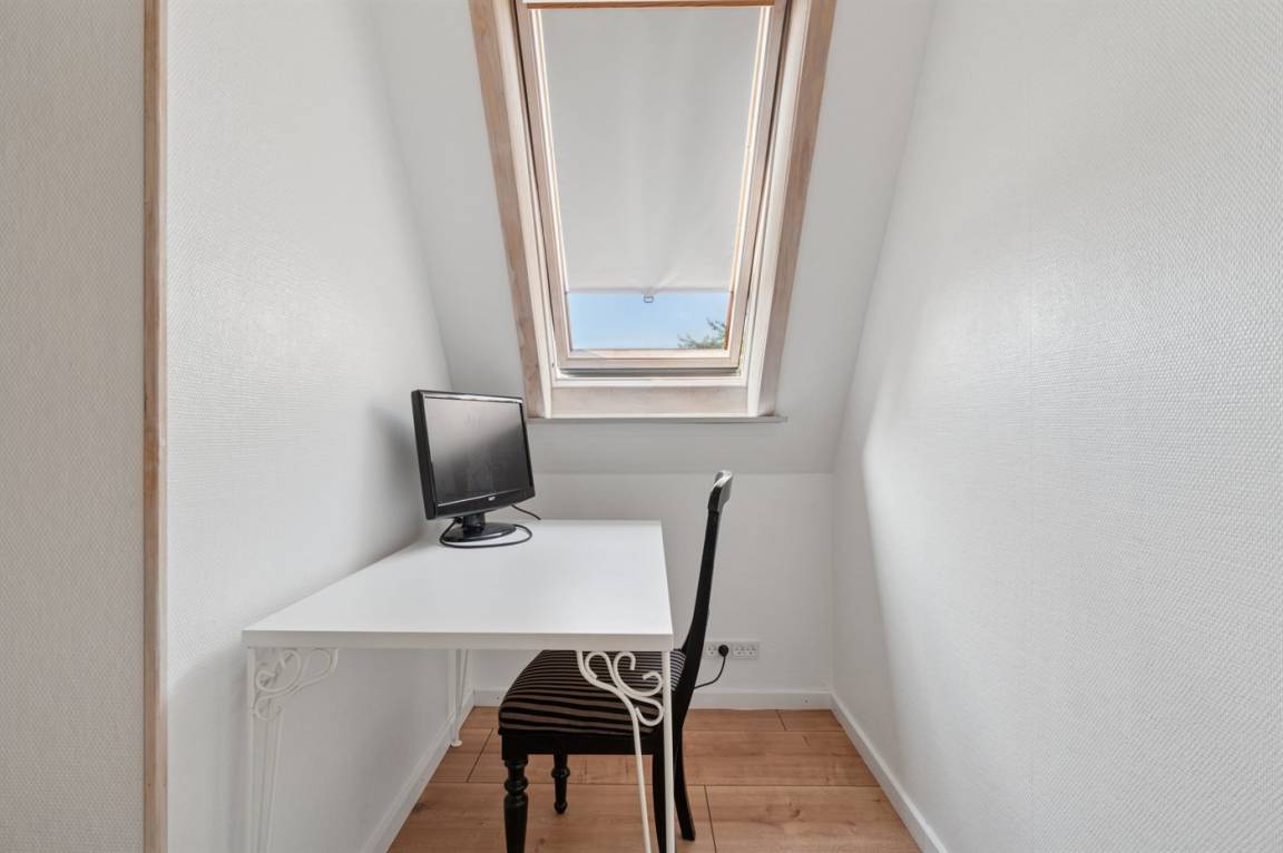Das Haus ist in zwei Einheiten aufgeteilt: 2A („Store K") und 2B („Lille K"). „Lille K" ist die private Ferienwohnung des Eigentümers, der im Ausland lebt, aber eine enge Verbindung zu Bornholm hat. Der Garten vor dem Haus kann benutzt werden, der Garten hinter dem Haus ist privat.