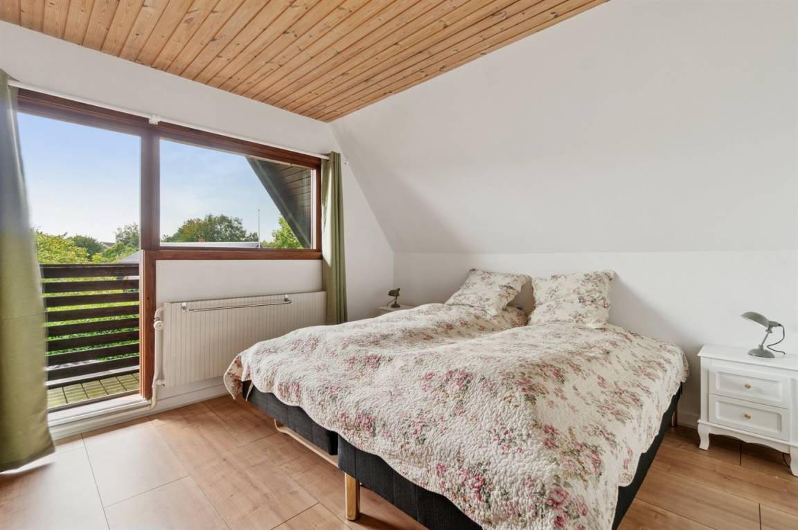Im Obergeschoss gelangst du vom südlich gelegenen Schlafzimmer auf einen kleinen, gemütlichen Balkon, auf dem du morgens in Ruhe deinen Kaffee genießen kannst.