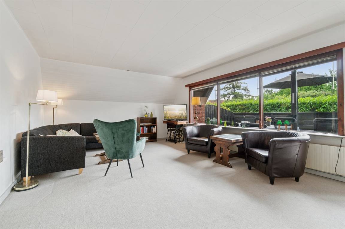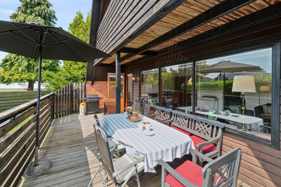 Das helle Wohnzimmer mit Zugang zur überdachten Terrasse ist ein natürlicher Treffpunkt – und die nach Süden ausgerichtete Terrasse ideal für gemütliche Grillabende mit der ganzen Familie.