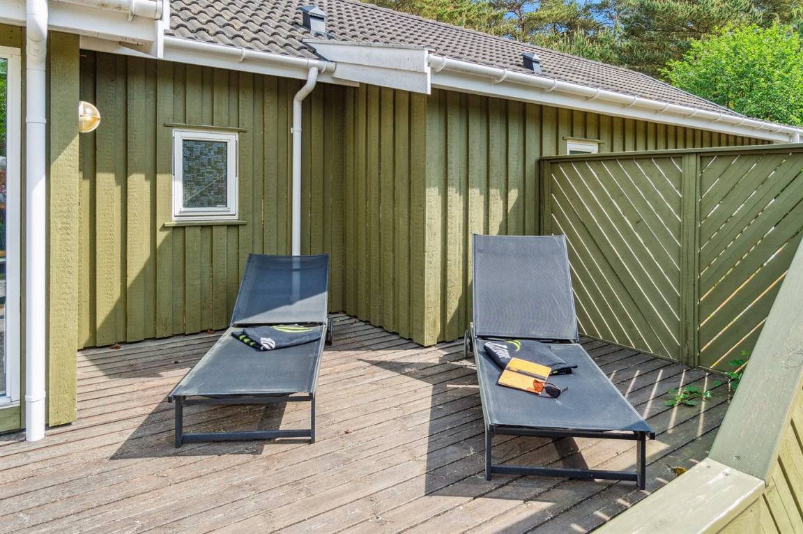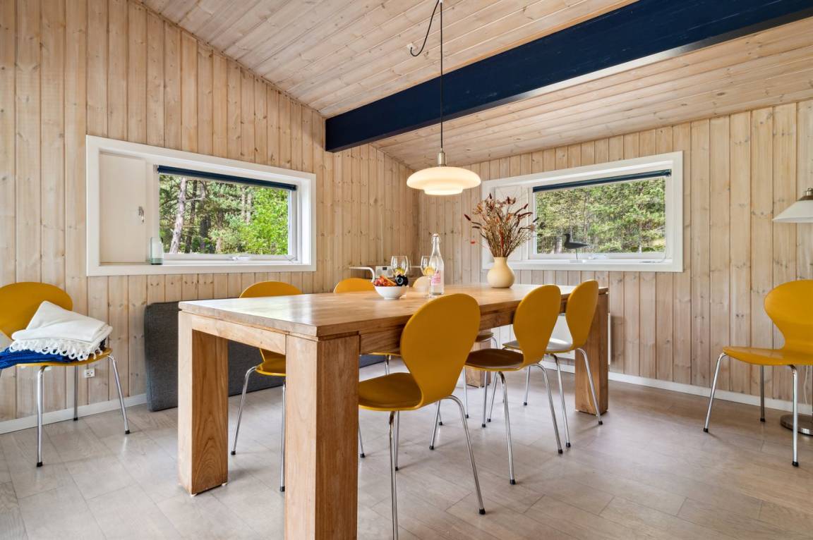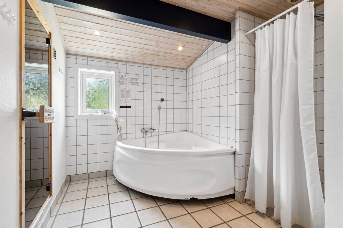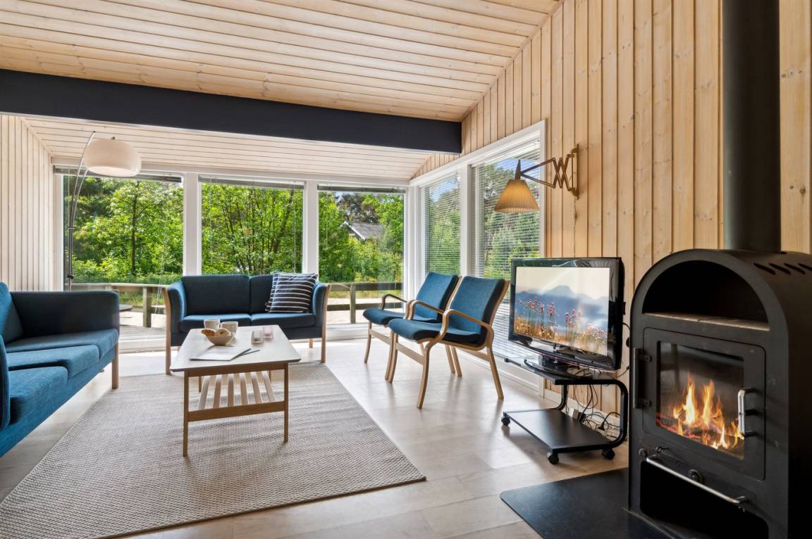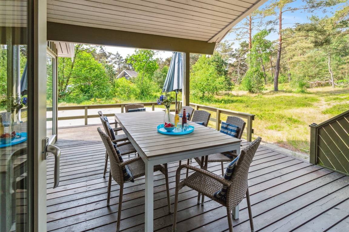 Das Herz des Hauses ist das Wohnzimmer, das gut möbliert ist mit Qualitätsmöbeln - helle Böden, Wände und Decken verleihen der Innenumgebung ein angenehmes Gefühl. Gut ausgestattete Küche mit dem Essbereich in der Nähe, damit das Servieren leicht vonstatten gehen kann, wenn die Familie zusammenkommt. Alles in allem bietet das Ferienhaus ein gutes und sorgloses Urlaubserlebnis - sowohl drinnen als auch auf den großen Holzterrassen, die teilweise überdacht sind. Der herrliche Sandstrand bei Jomfrugård lädt zu einem Bad oder einfach nur zum Genießen der Sonne in der schönen Umgebung ein.