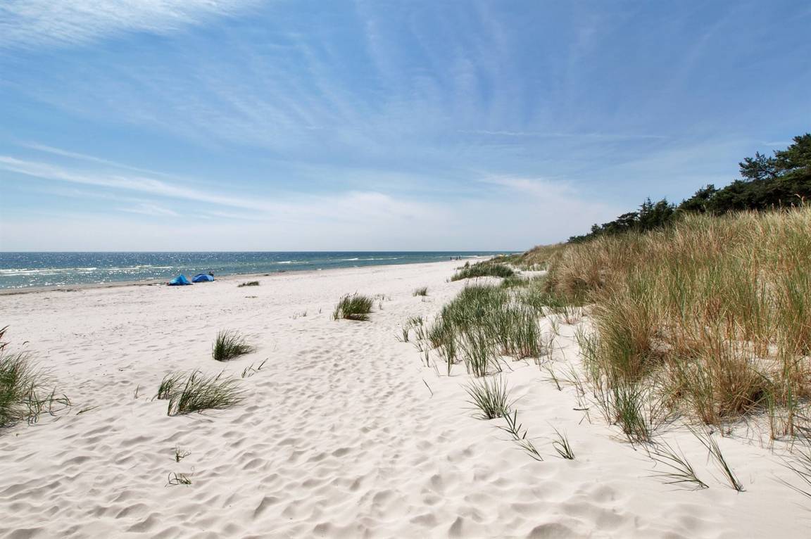 Zwischen dem Haus und dem Strand gibt es Dünenareale mit Kiefern, Heide und Helmbüschen. Unterhalb des Hauses liegt ein relativ ungestörter Strand.