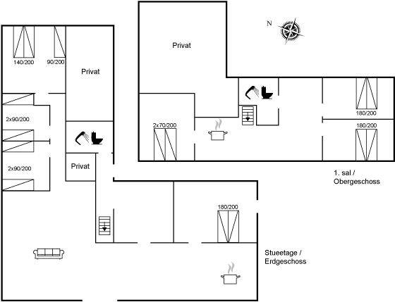 SchlafverhältnisseDie Schlafplätze verteilen sich auf 7 Schlafräume. 12 Schlafplätze in Doppelbetten.2 Schlafplätze in elektrisch verstellbaren Betten. Ferner steht ein Kinderbett zur Verfügung.