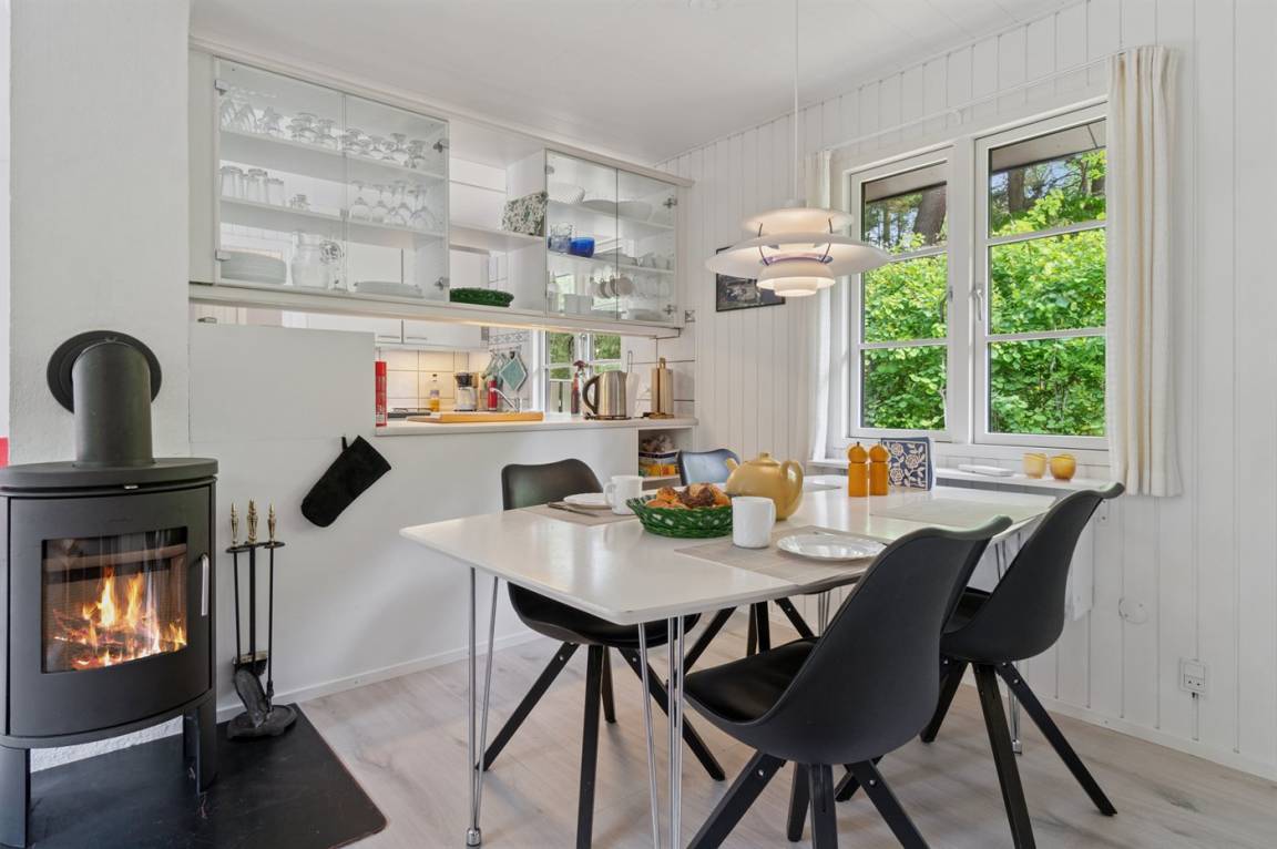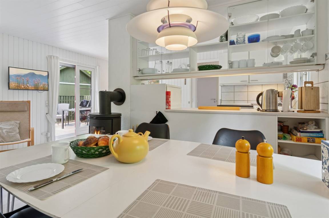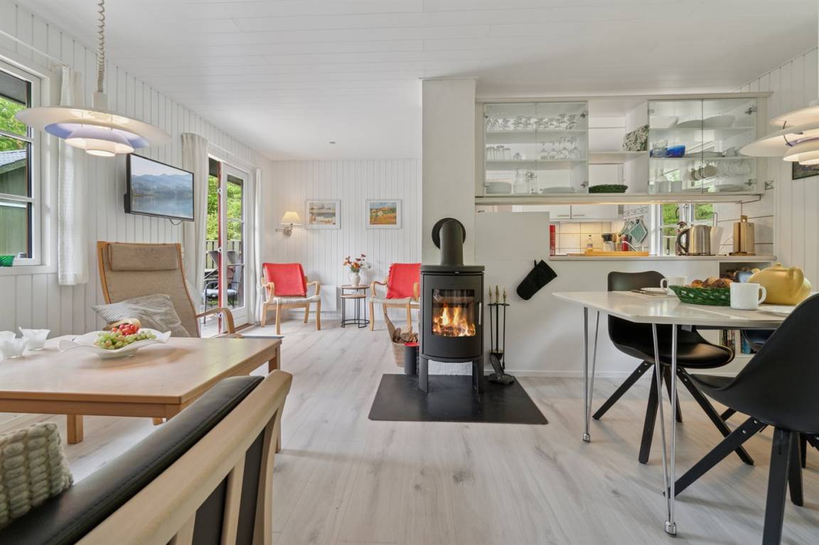 Dieses Haus ist schön renoviert und tritt einladend hervor. Im Zusammenhang mit der teilweisen Renovierung in 2022 wurden neue Fenster und Türen installiert, die zusammen mit der neu eingebauten Wärmepumpe für ein gutes Raumklima sorgen. An kühlen Abenden außerhalb der Saison kann man es sich hier mit Kartenspielen, einem guten Film oder vor dem Kaminofen gemütlich machen.