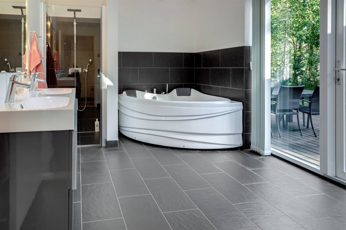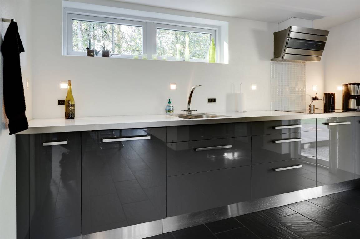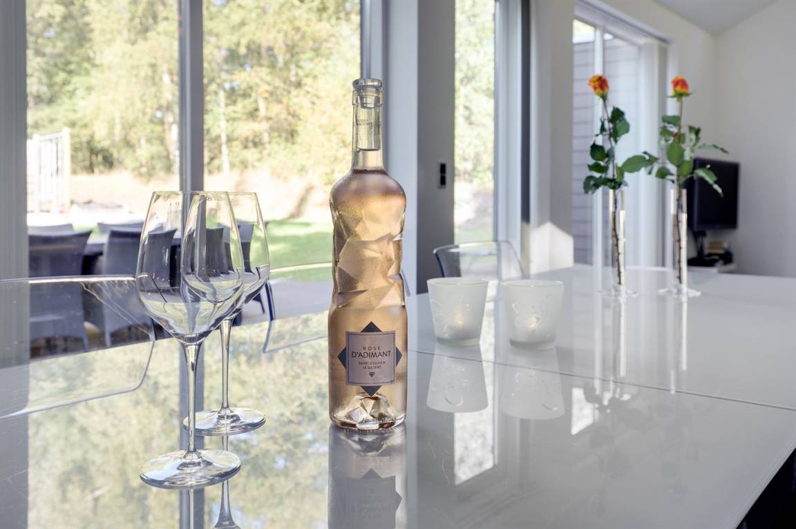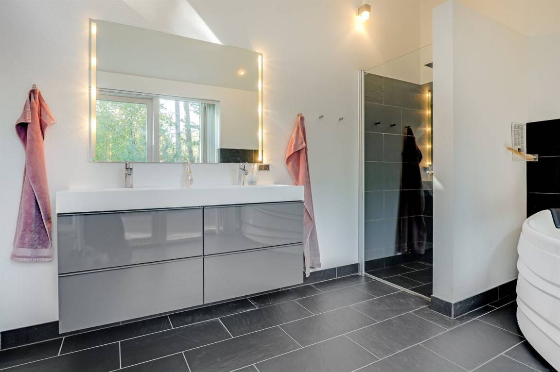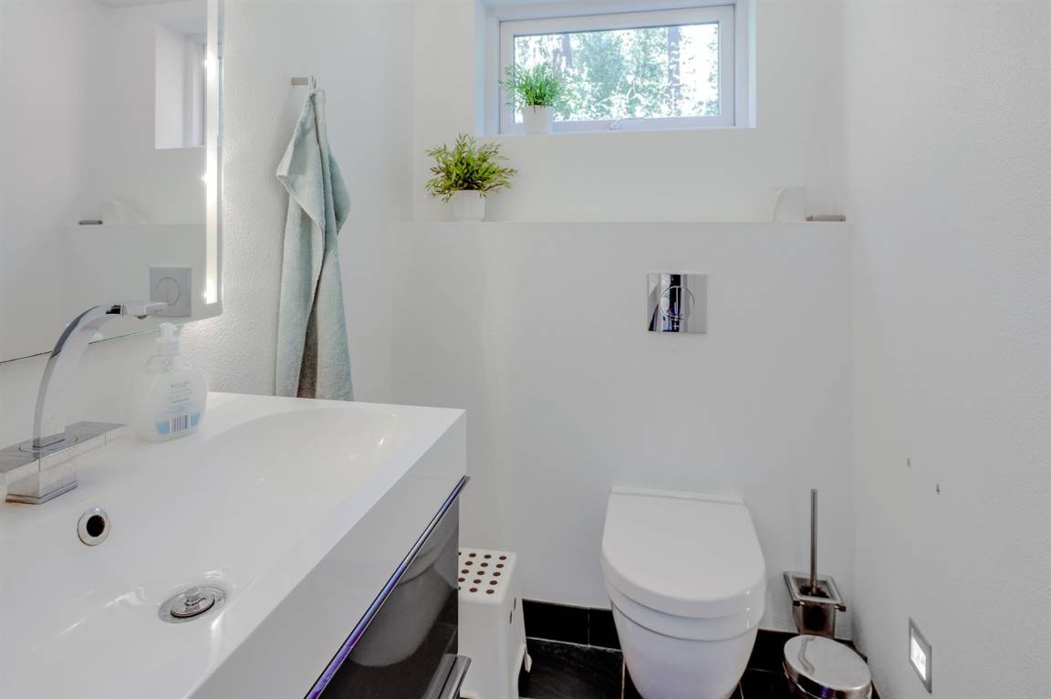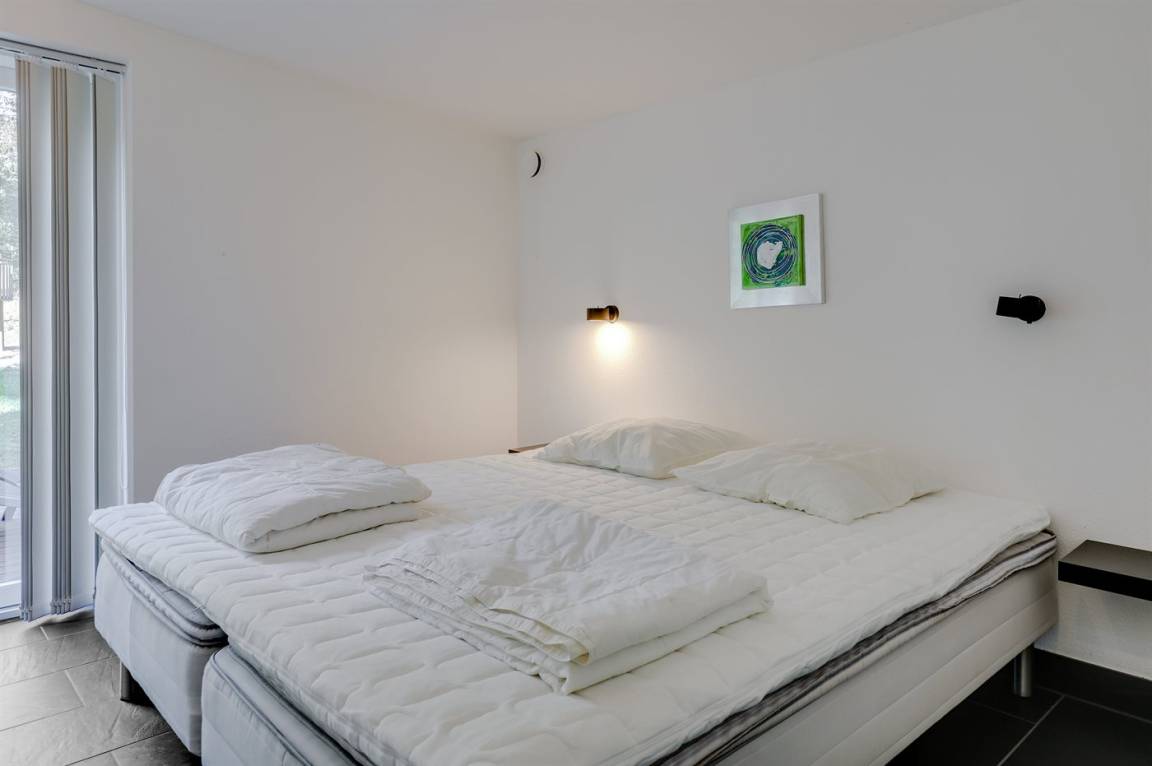 Tolles, einzigartiges Ferienhaus, bei dem hohe Qualität, eine interessante Architektur und eine gut durchdachte, gediegene Einrichtung großgeschrieben werden. Die Panoramafenster sorgen für einen wunderschönen Lichteinfall und dank einer besonderen Türkonstruktion kann man sich die Natur an warmen Sommerabenden direkt ins Haus holen. Zum Haus gehört eine große Holzterrasse und ein großes Grundstück, das Kindern viel Platz zum Spielen bietet.