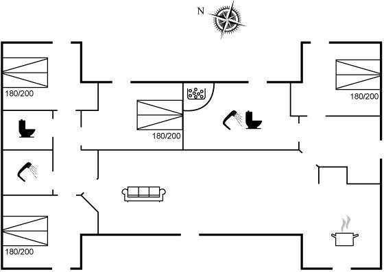 SchlafverhältnisseDie Schlafplätze verteilen sich auf 4 Schlafräume. 8 Schlafplätze in Doppelbetten. Ferner steht ein Kinderbett zur Verfügung.