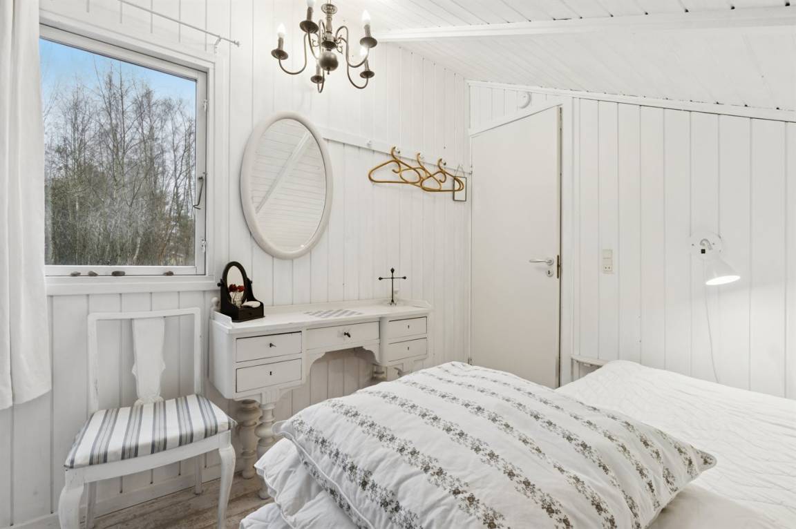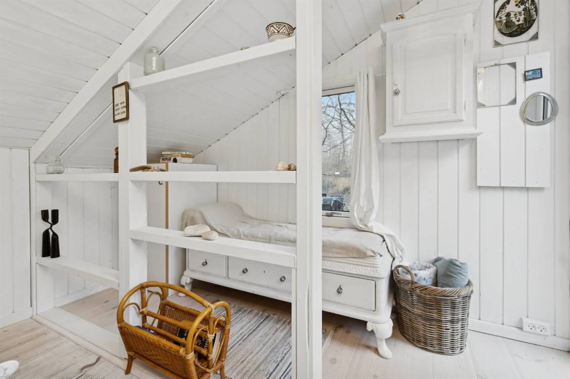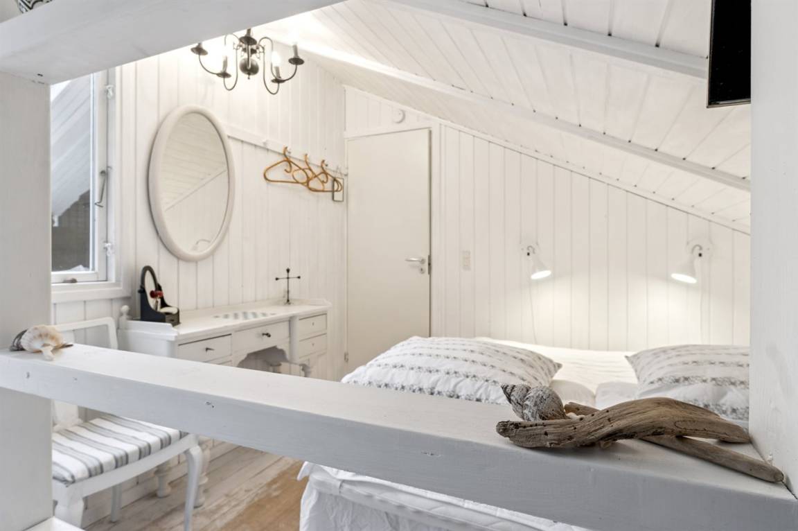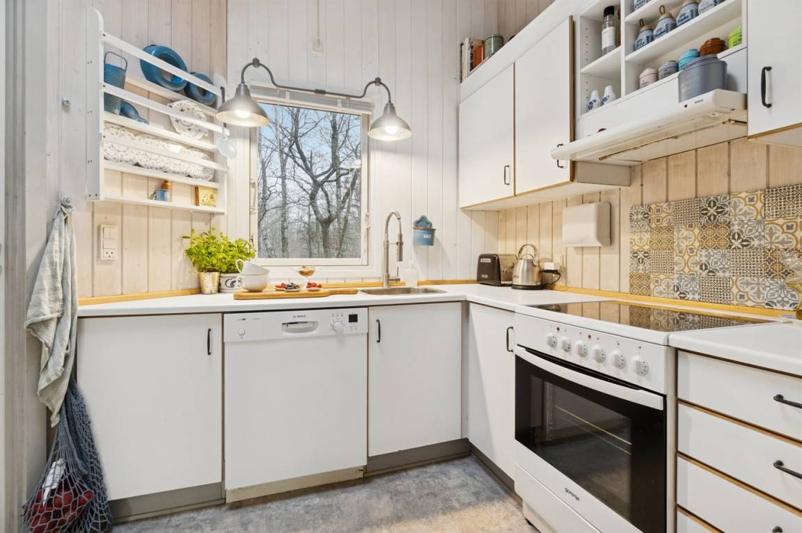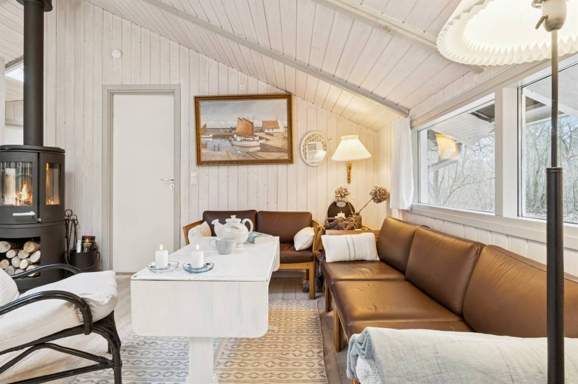 Das Haus bietet eine große, teilweise überdachte Holzterrasse, auf der du die Natur, das Wetter sowie die Ruhe und den Frieden dieses Ferienhausgebiets genießen kannst. Besonders die großen Dachfenster sorgen für ein helles Interieur in Wohn- und Küchenbereich, sodass du das geschmackvoll eingerichtete Ferienhaus in vollen Zügen genießen kannst. Es wurde viel Wert darauf gelegt, dass sich ein stimmiges Gesamtbild durch das ganze Haus zieht.