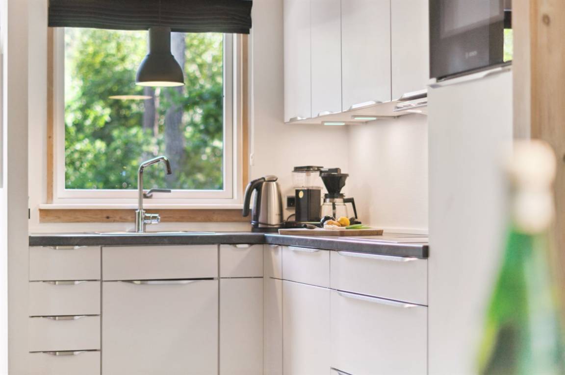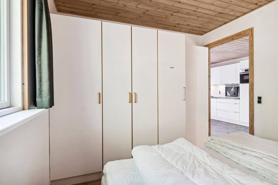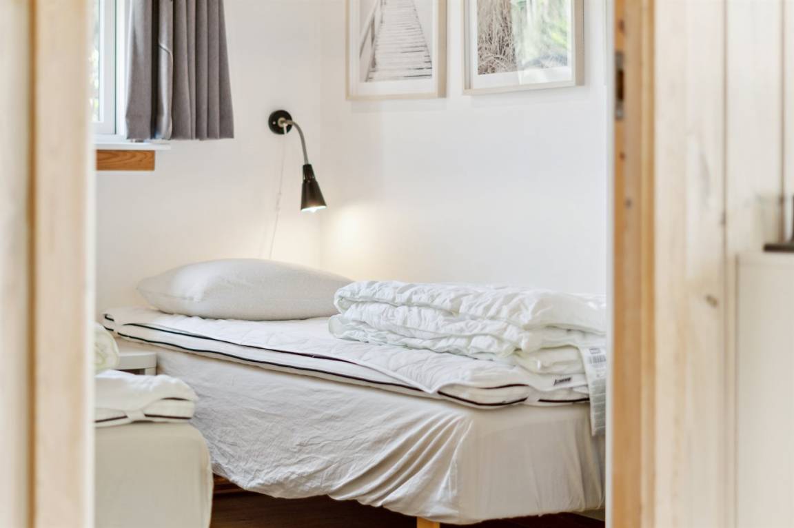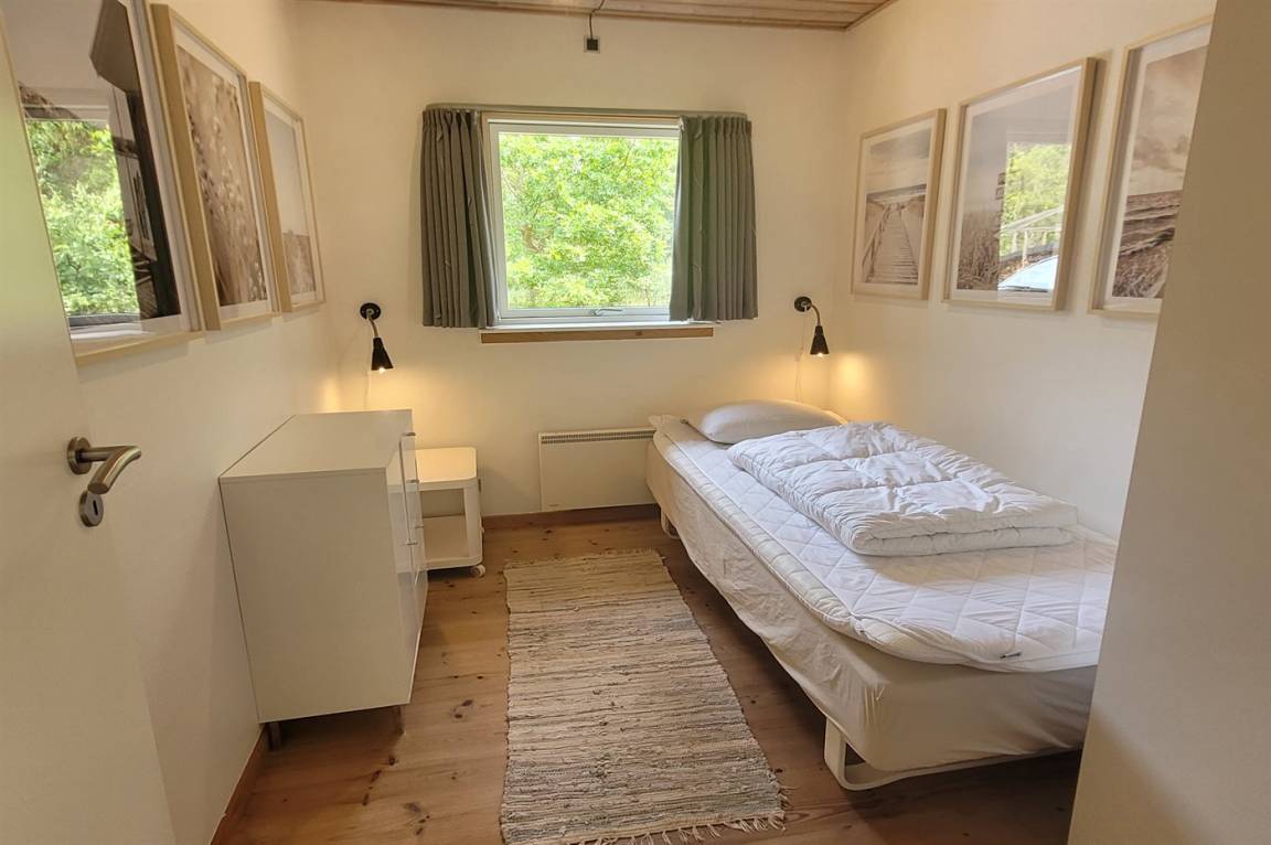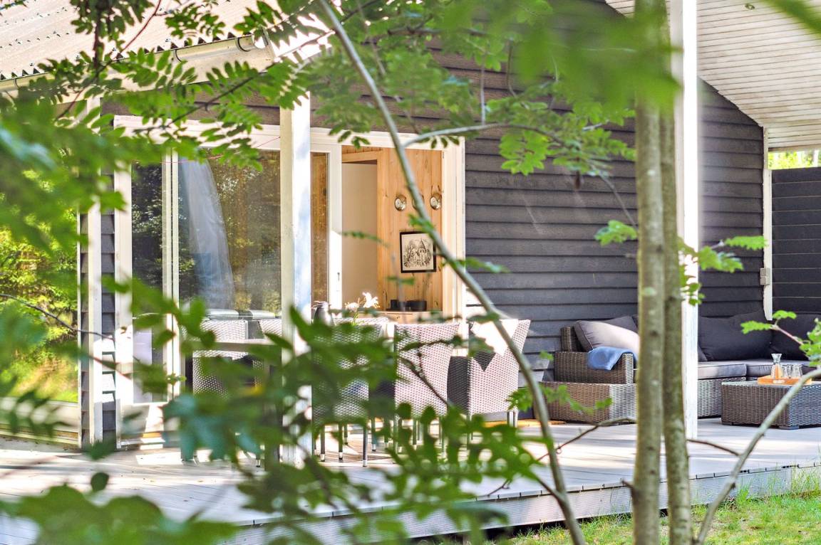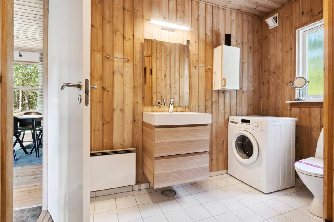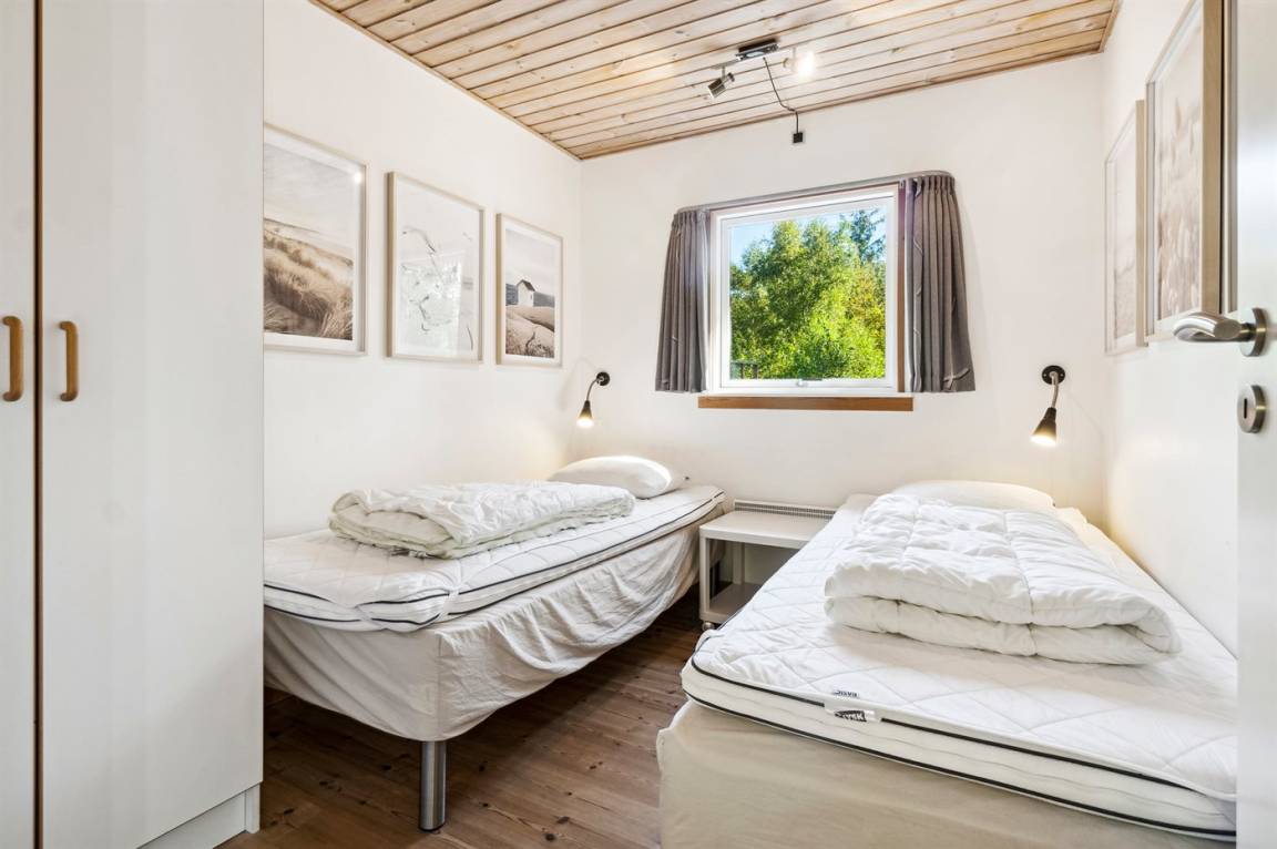 Das Ferienhaus liegt auf einem ungestörten Naturgrundstück mit teilweiseem Baumbestand, bestehend aus einer Mischung aus Birke und Kiefer, sowie einem offenen Bereich mit Naturgras. Das Haus bietet eine gute Qualität in der Möblierung, ein helles Interieur und ist komfortabel eingerichtet.