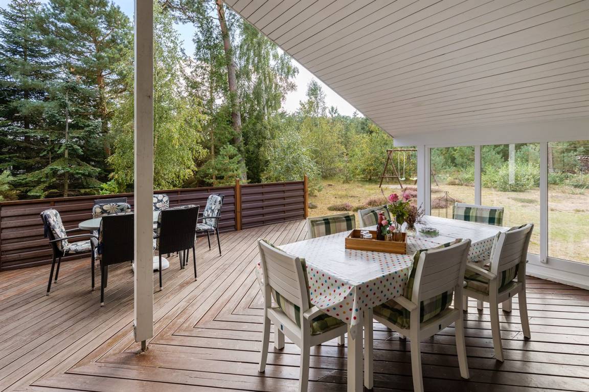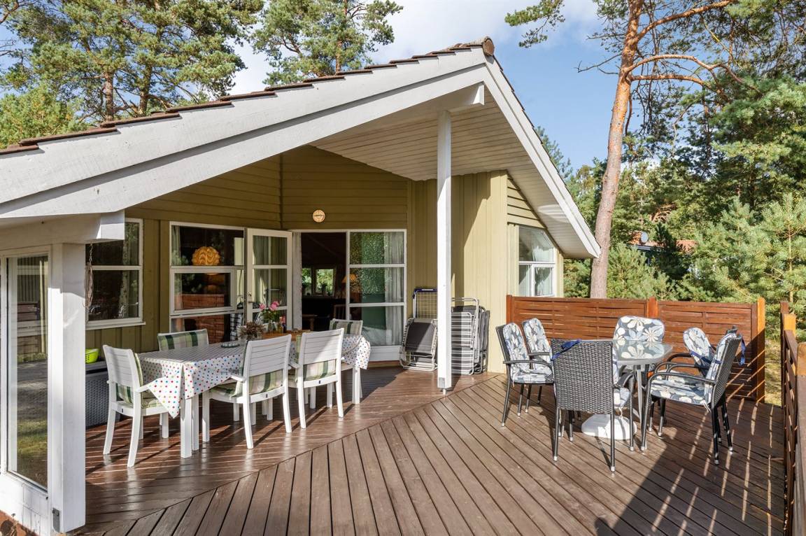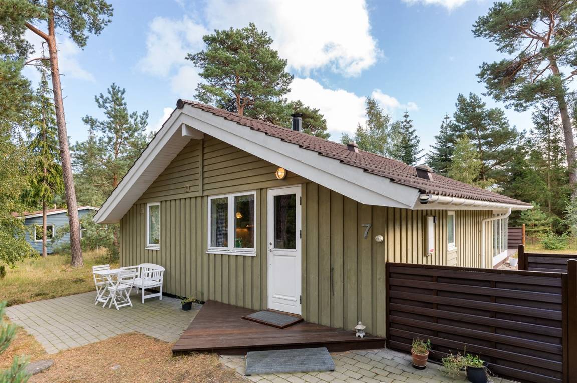 En gut gelegenes Ferienhaus aus Holz, von einem herrlichen Naturgrundstück umgeben, das mit Kiefern bewachsen ist. Das Ferienhaus hat 2 Terrassen, auf denen man die Ruhe, ein gutes Buch oder eine Mahlzeit im Freien genießen kann.