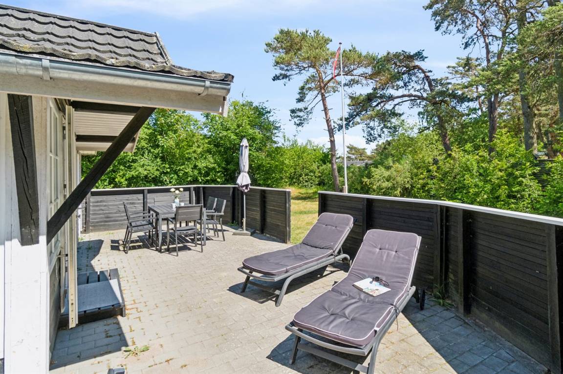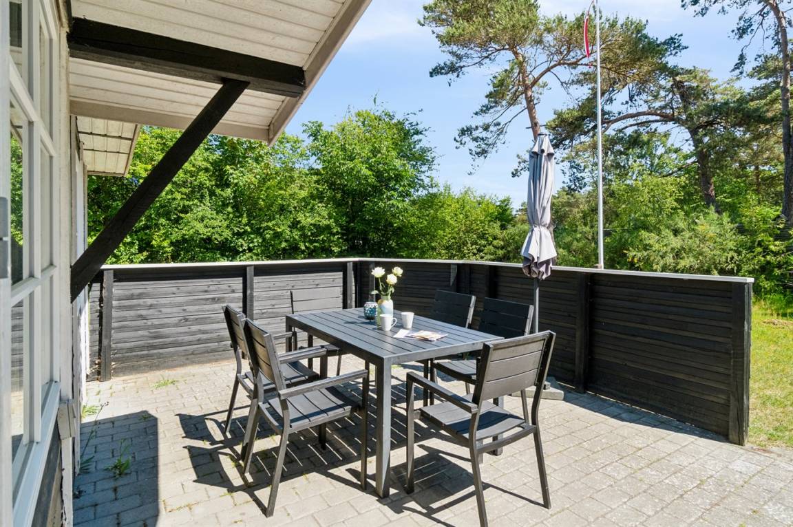 DraußenDie Ferienunterkunft liegt auf einem 700 m² großen Naturgrundstück. Die Entfernung zum Meer beträgt 270 m. Die nächste Einkaufsmöglichkeit liegt 2000 m entfernt. Es steht ein offenes Terrassenareal zur Verfügung. Geräteraum. Es steht ein Grill zur Verfügung. Parkplatz auf dem Grundstück.
