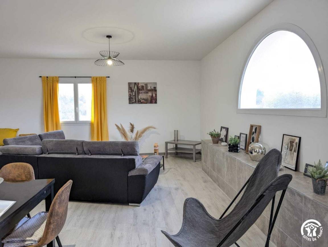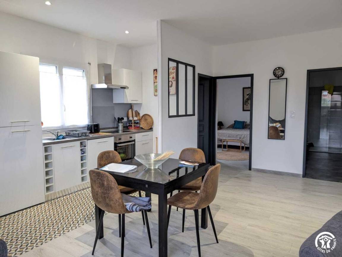 „Très bel appartement spacieux. Tout y est neuf avec des équipements literie salon électroménagers de grande qualité Excellent accueil de la propriétaire par sa gentillesse et sa disponibilité qui met à disposition un espace de détente dans le jardin où l'on peut se reposer. Environnement calme. Petits commerces accessibles facilement à pied. Le petit plus: Le clocher de l église du village vu du séjour illuminé dès la tombée de la nuit.“