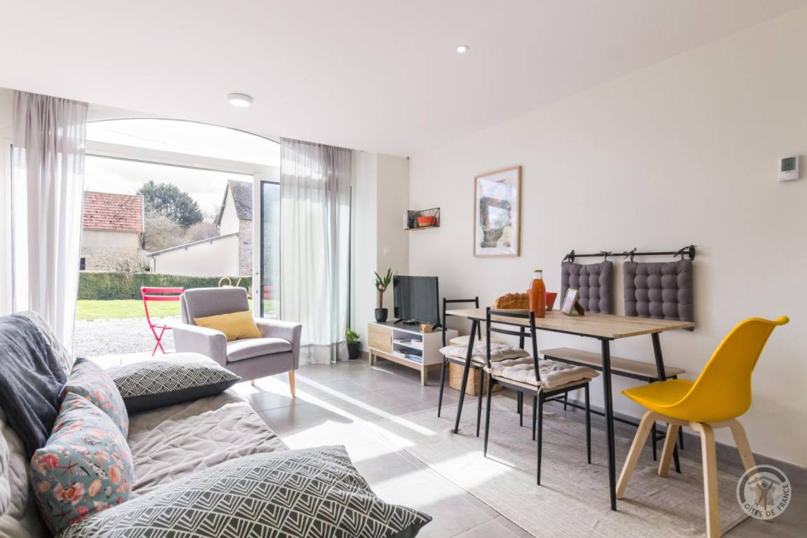 „Much nicer than we expected for the price we paid, very modern and very clean.Everything you could wish for to make your stay pleasant, even BBC channels on the t. v.!The beds were beautiful we've never slept so well, the two toilets were immaculate and the kitchen had allthe utensils youll need. Fernando the owner spoke perfect English and could help with any problems. The area is peaceful and the roads very quiet. It's pretty much in the centre of Normandy with loads of places to go. The gite is all on one level so no stairs. We' like to live there!“