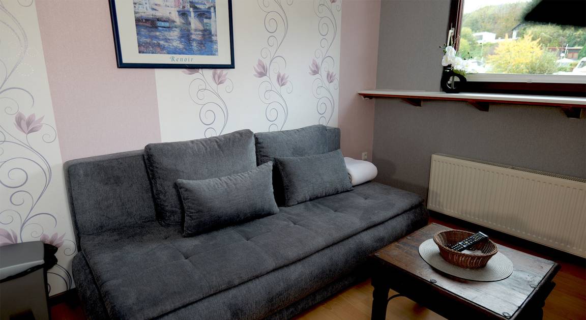 Kleine Wohnung 1008 mit Vollausstattung, separatem Schlafzimmer und der Möglichkeit für die dritte und vierte Person auf der Boxspring-Couch im Wohnzimmer zu schlafen.(#gerneperdu)