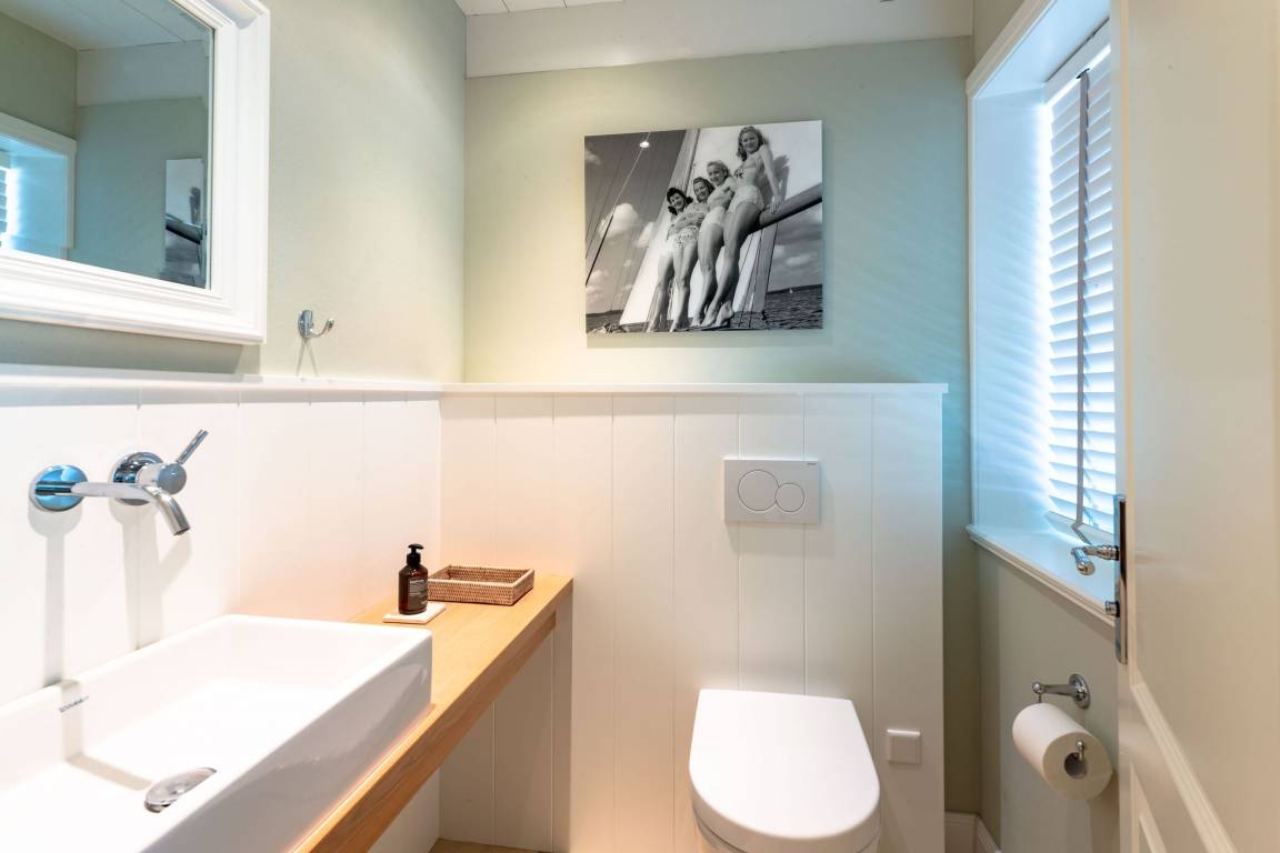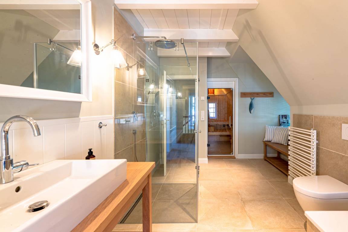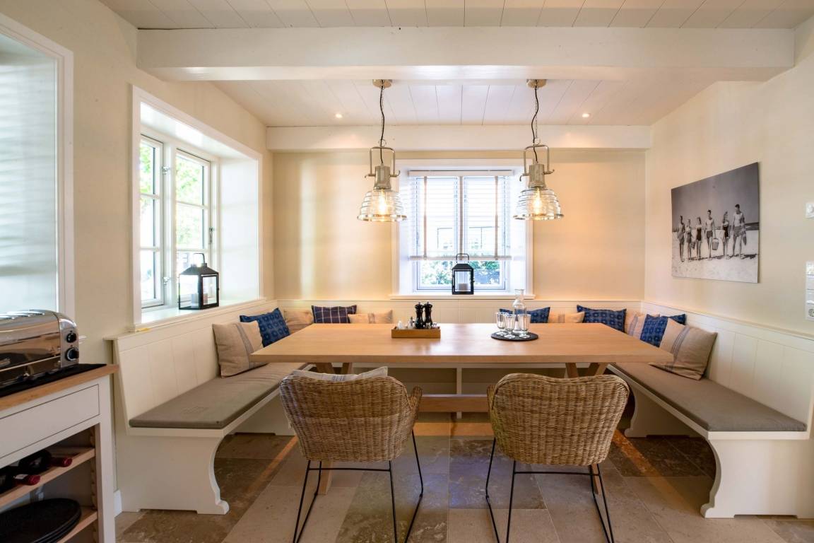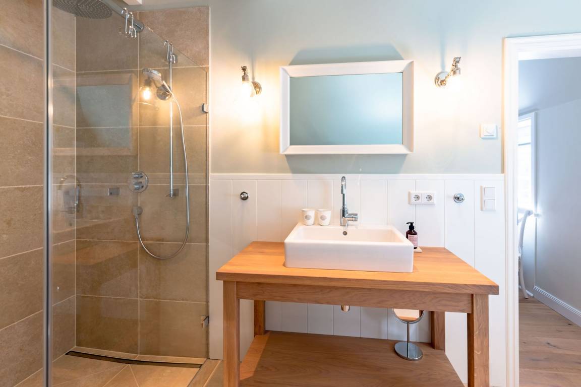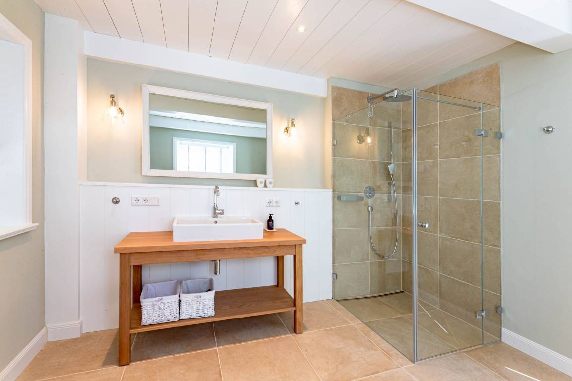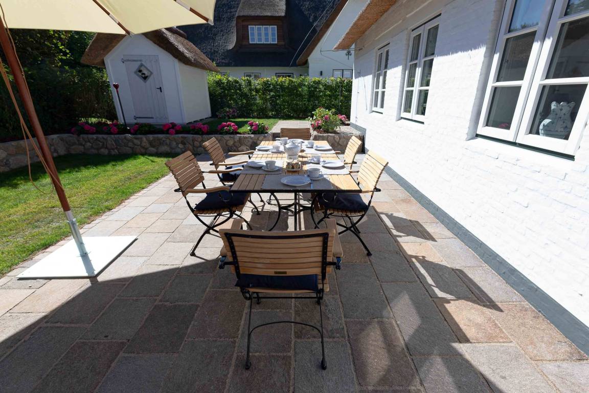 Die „Küstenliebe Nieblum" befindet sich im Dorfkern von Nieblum, dem wohl schönsten Dorf der Insel. Das denkmalgeschützte, 200qm große Kapitänshaus von 1799 wurde mit viel Sorgfalt und Liebe hochwertig renoviert und stilvoll eingerichtet. Im Haus finden 6 Personen Platz. Ein Schlafzimmer befindet sich im Erdgeschoss, zwei weitere im Obergeschoss. Jedes Schlafzimmer verfügt über ein eigenes Bad. Ein separates Gäste-WC befindet sich zusätzlich im Erdgeschoss. Die offene Küche bietet einen exklusiven Herd und eine hochwertige Küchenausstattung. An der straßenabgewandten Südseite des Hauses liegt der schöne, umschlossene Garten mit Friesenwall. Der historische Kachelofen von 1840, aber auch die Natursteinböden, die großzügige Diele mit separatem Garderobenraum und die offene Balkendecke im oberen Schlafzimmer geben der „Küstenliebe Nieblum" besonderen Charme. Der idyllische Friesenort Nieblum ist geprägt von Bauerngärten, verwinkelten Gassen und Friesenhäusern und wurde bereits als schönstes Dorf Deutschlands ausgezeichnet. Bäckerei, Fisch- und Feinkostgeschäft, Fahrradverleih, Restaurants und mehr befinden sich in fußläufiger Nähe. Der Strand ist 1200 m entfernt. Wer das Besondere sucht und sieht, ist in der „Küstenliebe Nieblum" richtig