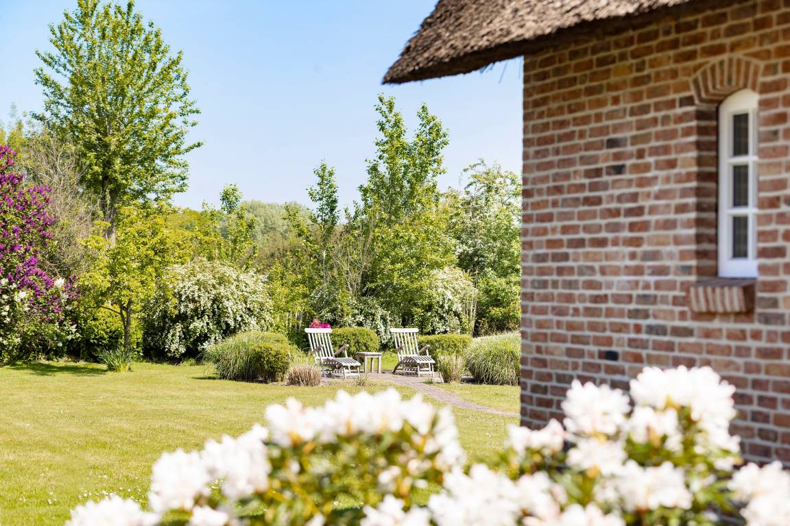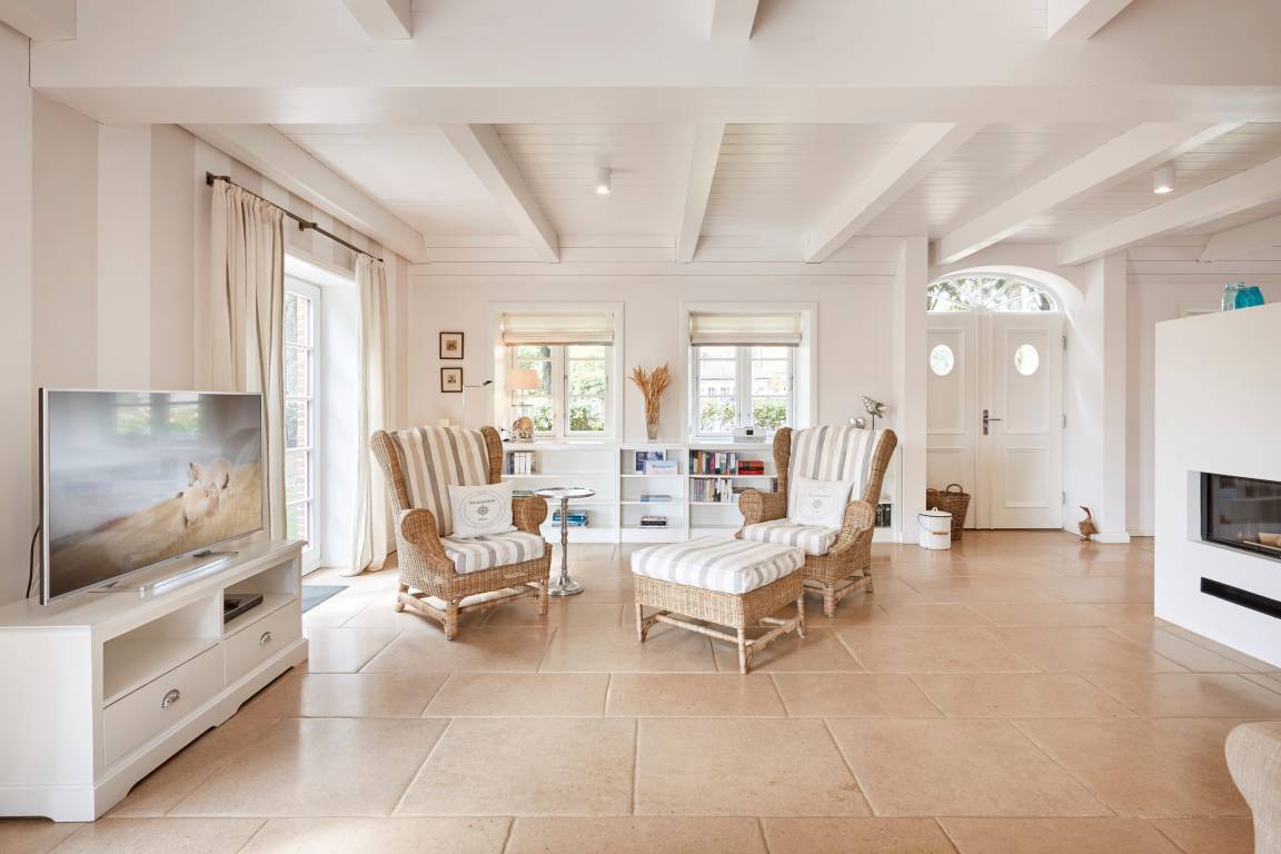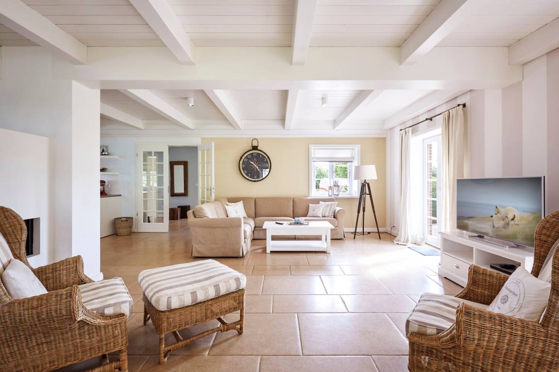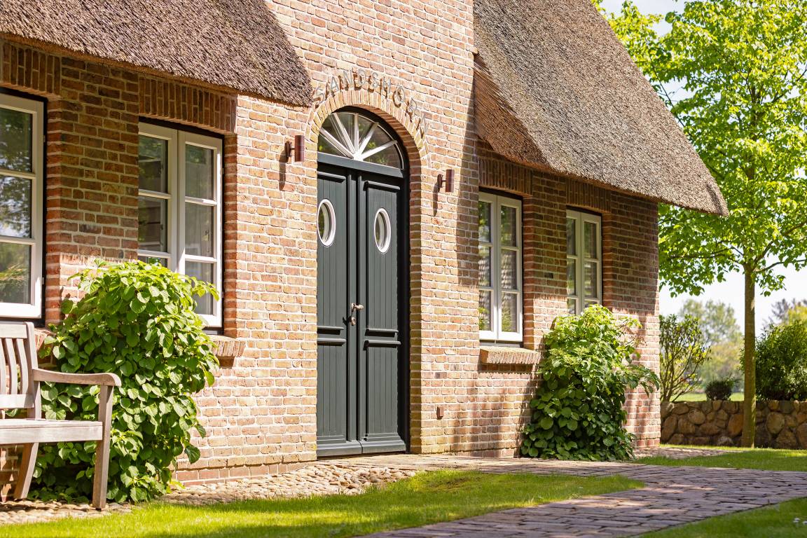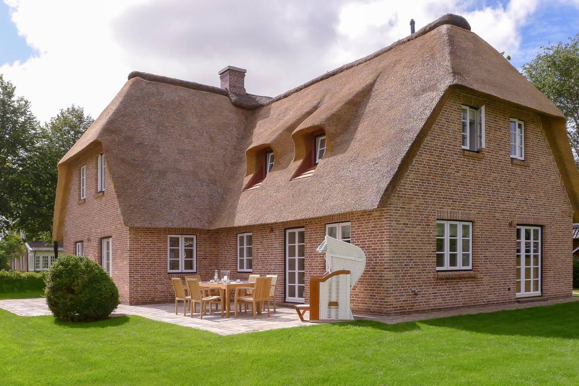 Willkommen im Sandshörn! Dieses imposante Feriendomizil unter Reet liegt am Rande des beliebten Friesendorfes Nieblum- und doch mittendrin. Das große Grundstück scheint keine Grenzen zu haben, und es eröffnet sich ein weiter Blick über Wiesen und Felder. Die großzügige und exklusive Innenausstattung lässt es an nichts fehlen, was Ihren Urlaub zum „Wohlfühl-Ereignis" macht. Der Garten und Terrasse lädt im Sommer zum Entspannen ein. Zum weitläufigen Sandstrand oder in den historischen Ortskern mit Restaurants, Cafes und Einkaufsmöglichkeiten sind es nur wenige Gehminuten. Auch in den Herbst- und Wintermonaten kann man hier wunderbar entspannte Urlaube genießen. Sauna und Panoramakamin tun ein Übriges. Wir freuen uns auf Sie.