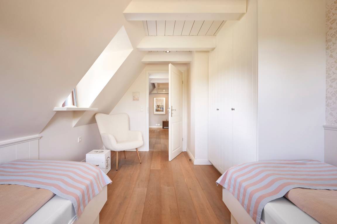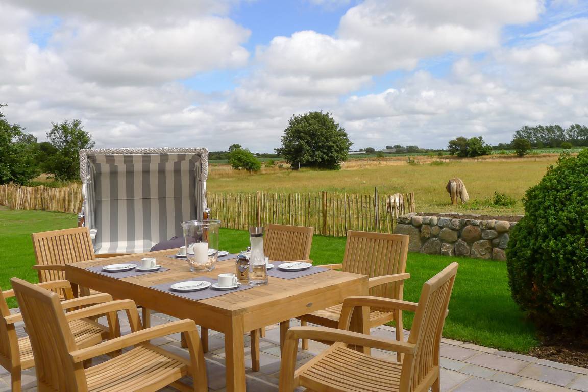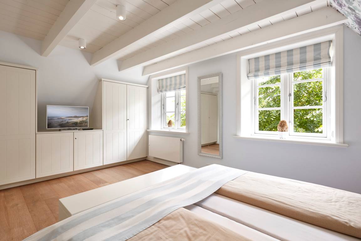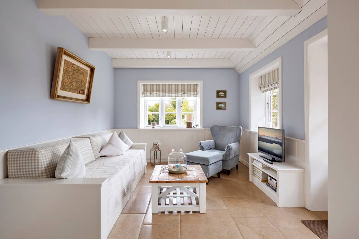 Willkommen im Sandshörn! Dieses imposante Feriendomizil unter Reet liegt am Rande des beliebten Friesendorfes Nieblum- und doch mittendrin. Das große Grundstück scheint keine Grenzen zu haben, und es eröffnet sich ein weiter Blick über Wiesen und Felder. Die großzügige und exklusive Innenausstattung lässt es an nichts fehlen, was Ihren Urlaub zum „Wohlfühl-Ereignis" macht. Der Garten und Terrasse lädt im Sommer zum Entspannen ein. Zum weitläufigen Sandstrand oder in den historischen Ortskern mit Restaurants, Cafes und Einkaufsmöglichkeiten sind es nur wenige Gehminuten. Auch in den Herbst- und Wintermonaten kann man hier wunderbar entspannte Urlaube genießen. Sauna und Panoramakamin tun ein Übriges. Wir freuen uns auf Sie.