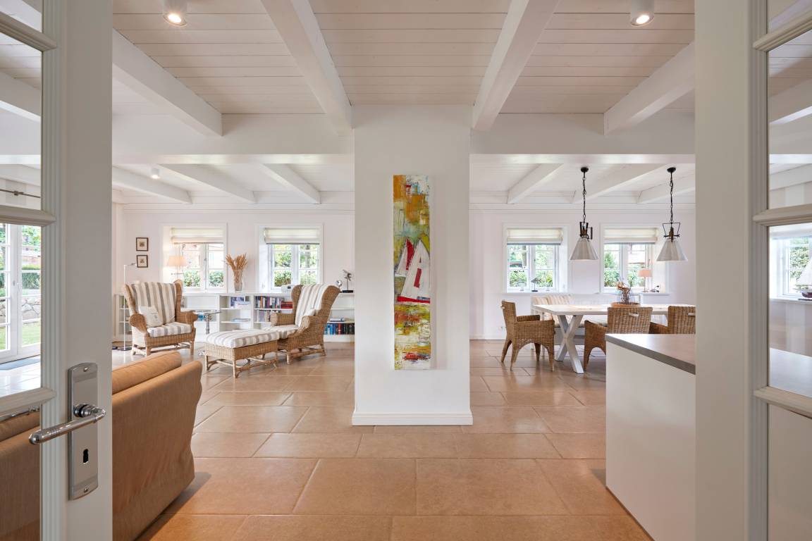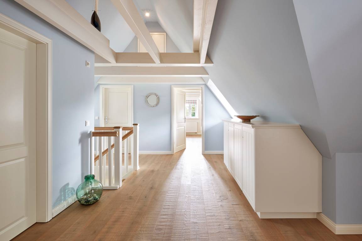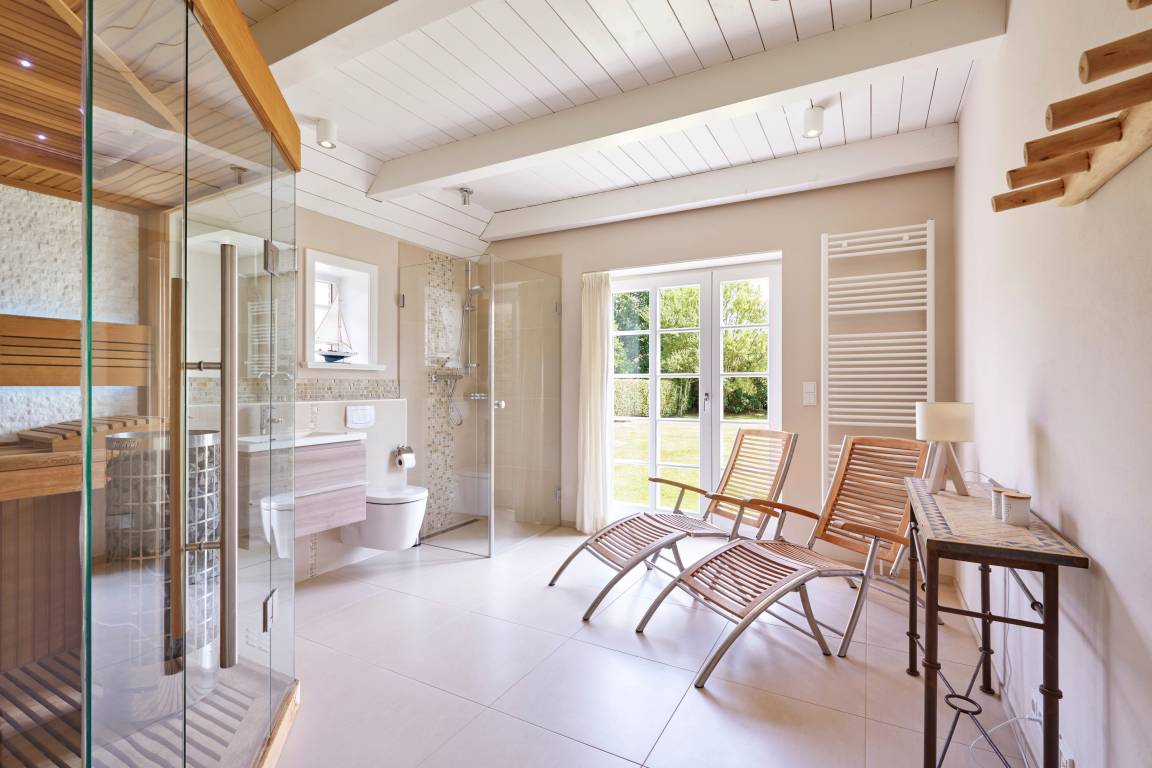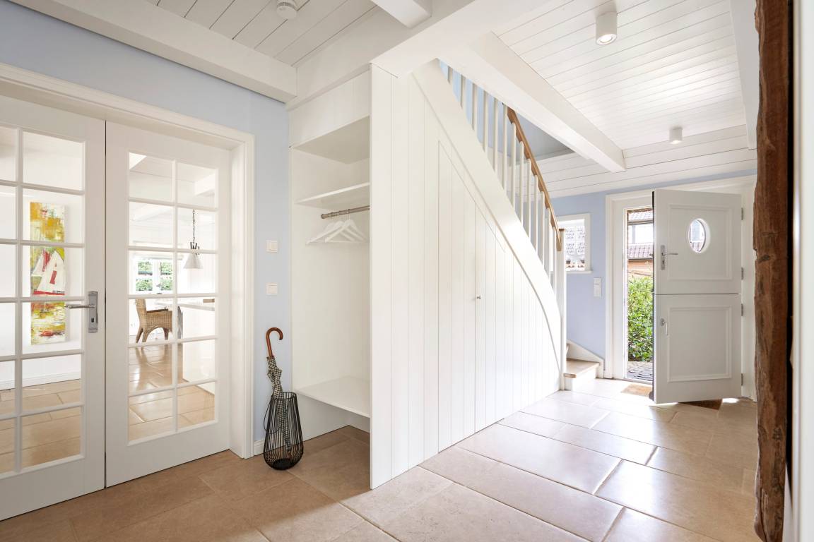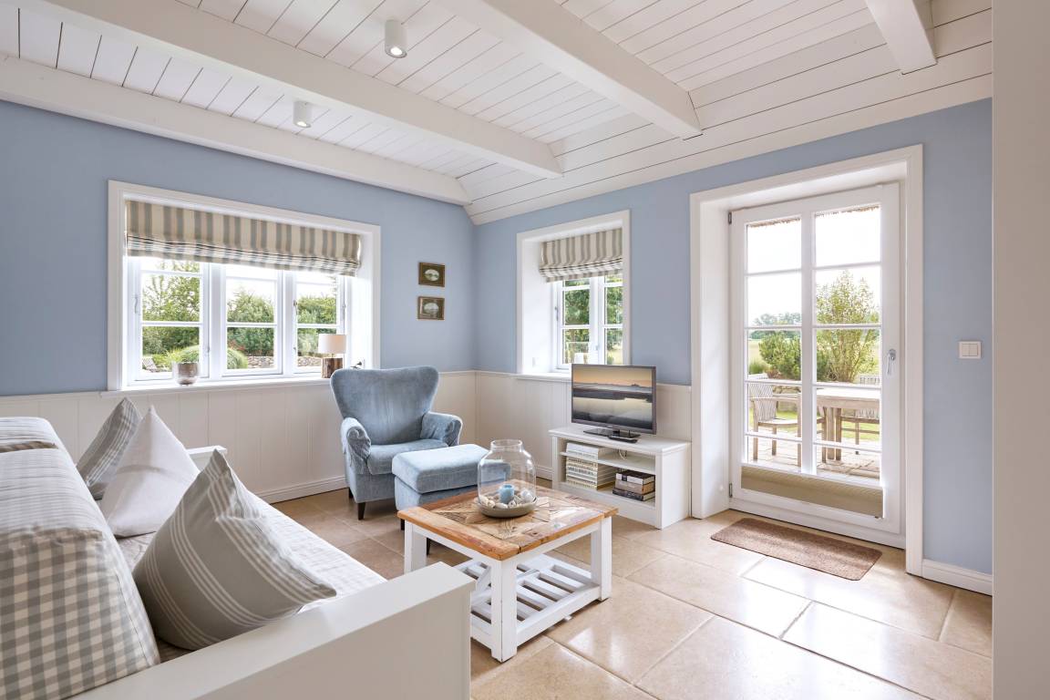 Willkommen im Sandshörn! Dieses imposante Feriendomizil unter Reet liegt am Rande des beliebten Friesendorfes Nieblum- und doch mittendrin. Das große Grundstück scheint keine Grenzen zu haben, und es eröffnet sich ein weiter Blick über Wiesen und Felder. Die großzügige und exklusive Innenausstattung lässt es an nichts fehlen, was Ihren Urlaub zum „Wohlfühl-Ereignis" macht. Der Garten und Terrasse lädt im Sommer zum Entspannen ein. Zum weitläufigen Sandstrand oder in den historischen Ortskern mit Restaurants, Cafes und Einkaufsmöglichkeiten sind es nur wenige Gehminuten. Auch in den Herbst- und Wintermonaten kann man hier wunderbar entspannte Urlaube genießen. Sauna und Panoramakamin tun ein Übriges. Wir freuen uns auf Sie.