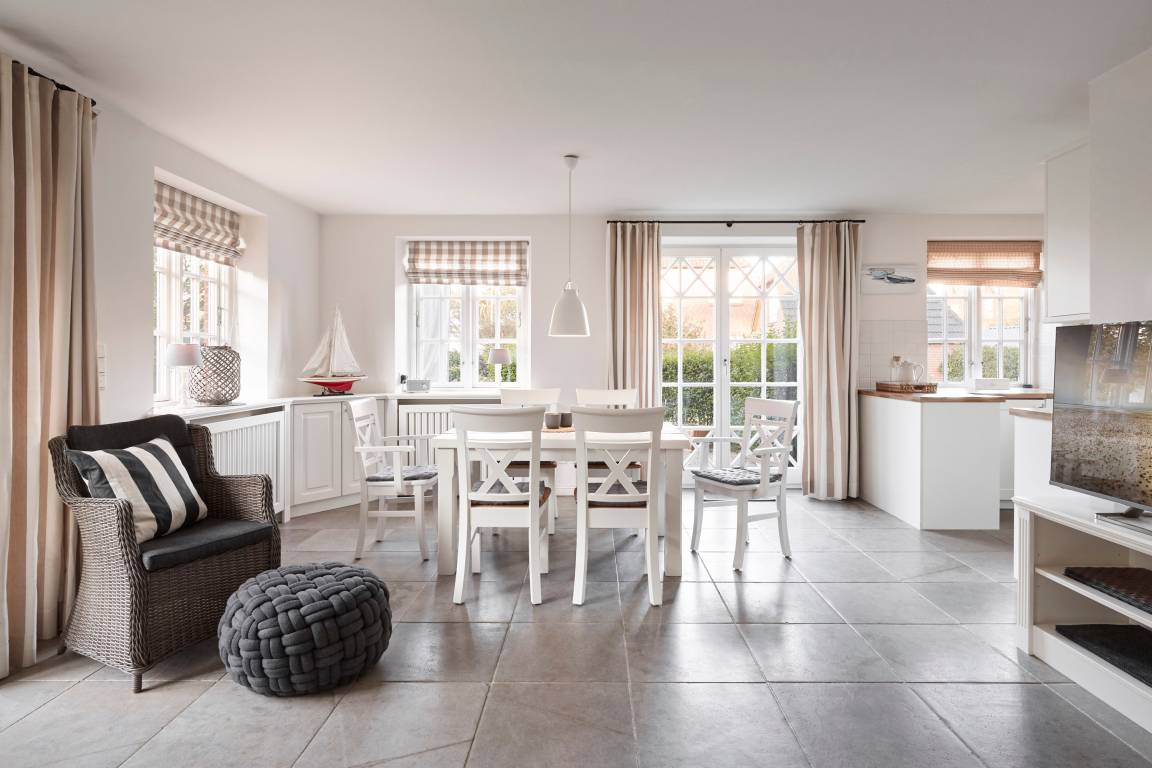 In unserer gemütlichen, reetgedeckten Doppelhaushälfte werden Sie Ihren Urlaub genießen. Das Haus liegt abseits in einer ruhigen Seitenstraße und in der Nachbarschaft wunderschöner, alter Nieblumer Kapitänshäuser. Restaurants, Cafés und Einkaufsmöglichkeiten befinden sich in unmittelbarer Nähe. Zum herrlichen Sandstrand mit Surfschule sind es nur wenige Minuten mit dem Fahrrad. Auch die Tennisplätze und den 27-Loch-Golfplatz, einer der interessantesten und schönsten Schleswig-Holsteins, erreichen Sie in kürzester Zeit. Im Haus und auf den zwei sonnigen Terrassen werden Sie wunderschöne, unvergessliche Ferientage verleben. [nbsp]Jetzt neu: Landhausdielen im Obergeschoss.