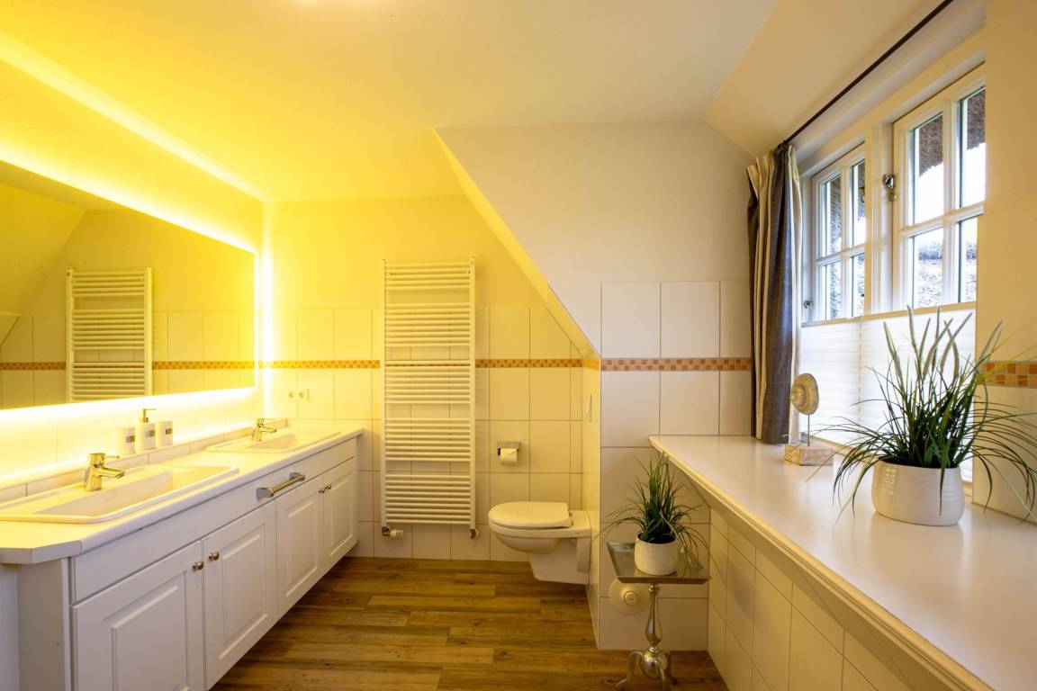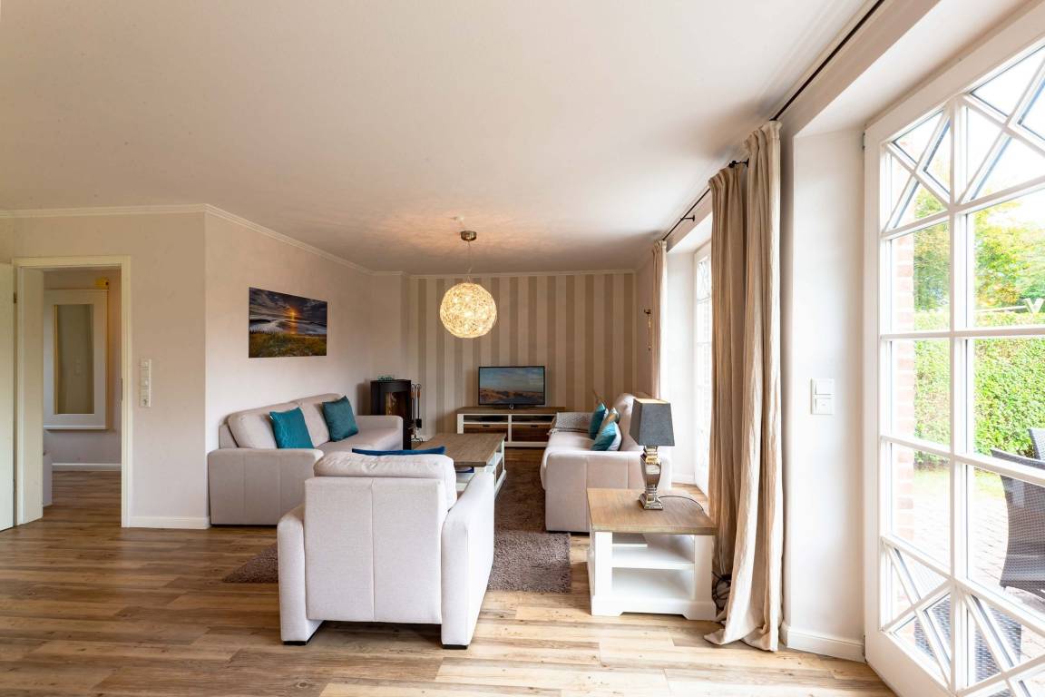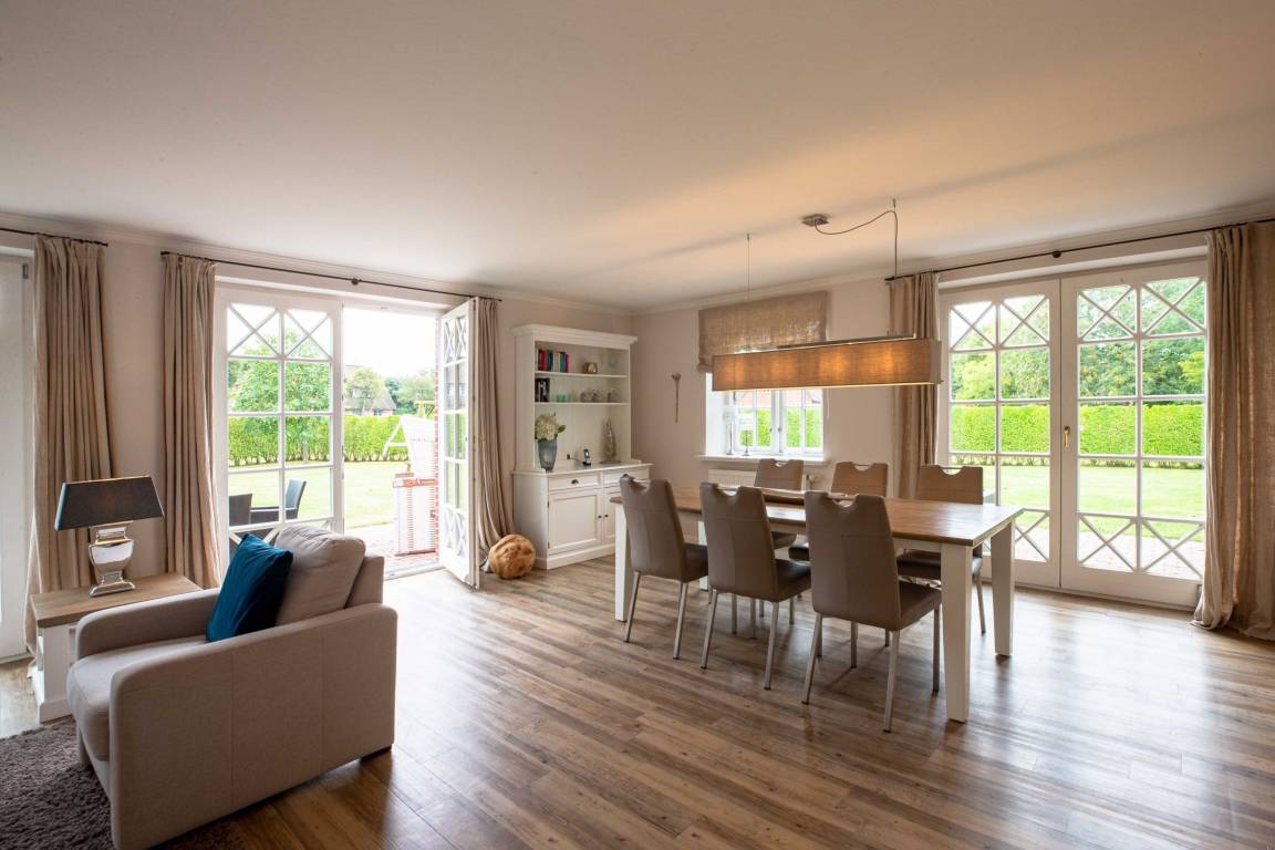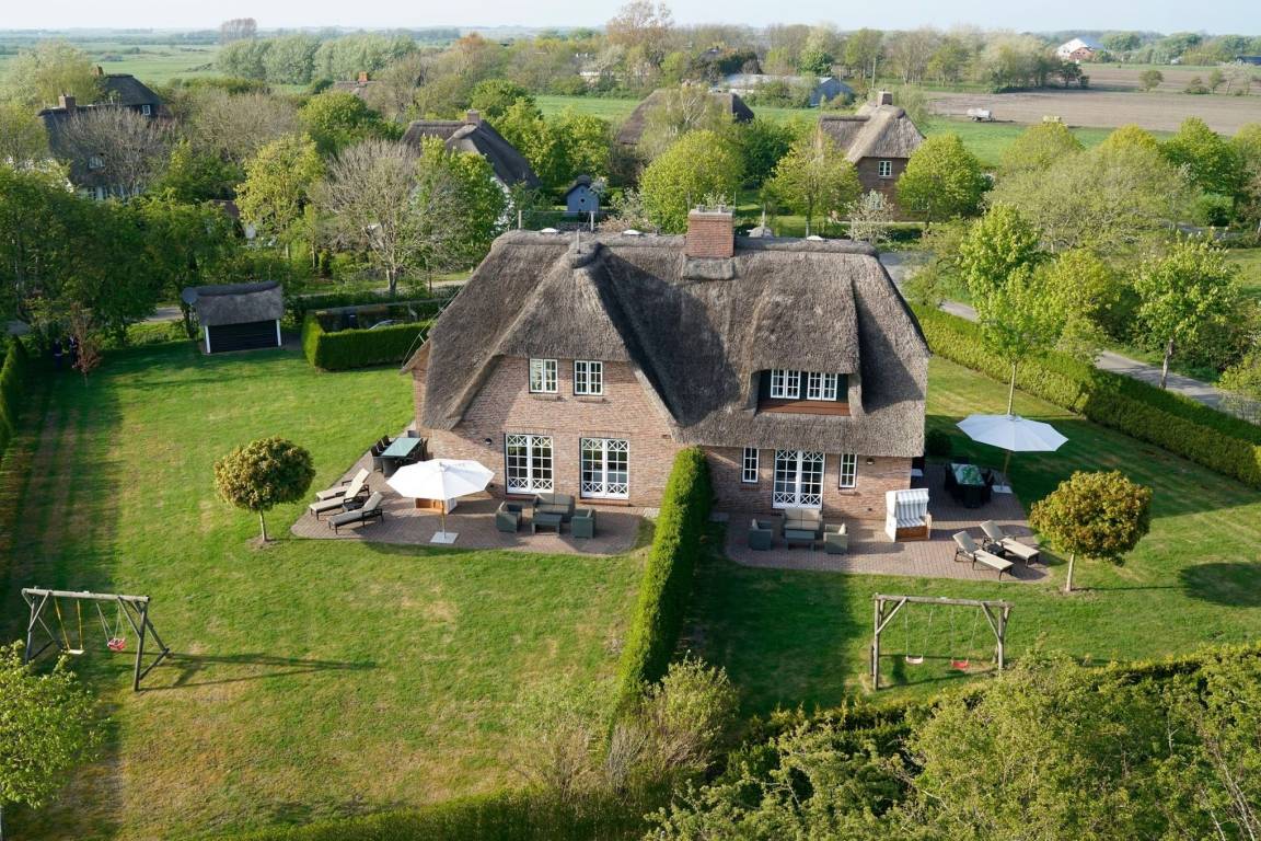 Landhaus Nieblum 2, Drunkenmanns Stieg 17, Nieblum. .Herzlich Willkommen in unserem Domizil in Nieblum. Dieses exklusive Doppelhaus, in einer absolut ruhigen Straße im Herzen von Nieblum gelegen, wird Sie begeistern. Jede Doppelhaushälfte wurde sehr hochwertig und geschmackvoll ausgestattet. Wohnen Sie unter Reet im schönsten Dorf der Insel Föhr und genießen Sie den großen Garten oder die großzügige und moderne Sauna mit Ruheraum. Wir freuen uns, Sie als unsere Gäste begrüßen zu dürfen.